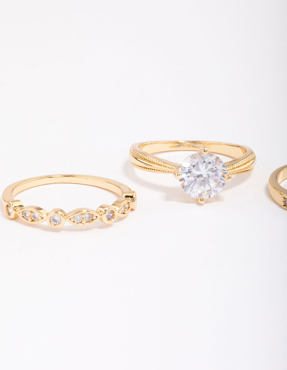 Gold Plated Cubic Zirconia Round Stone Ring Pack