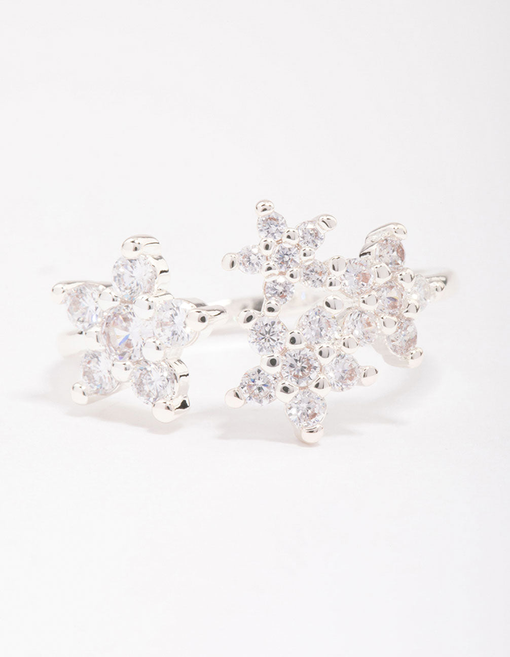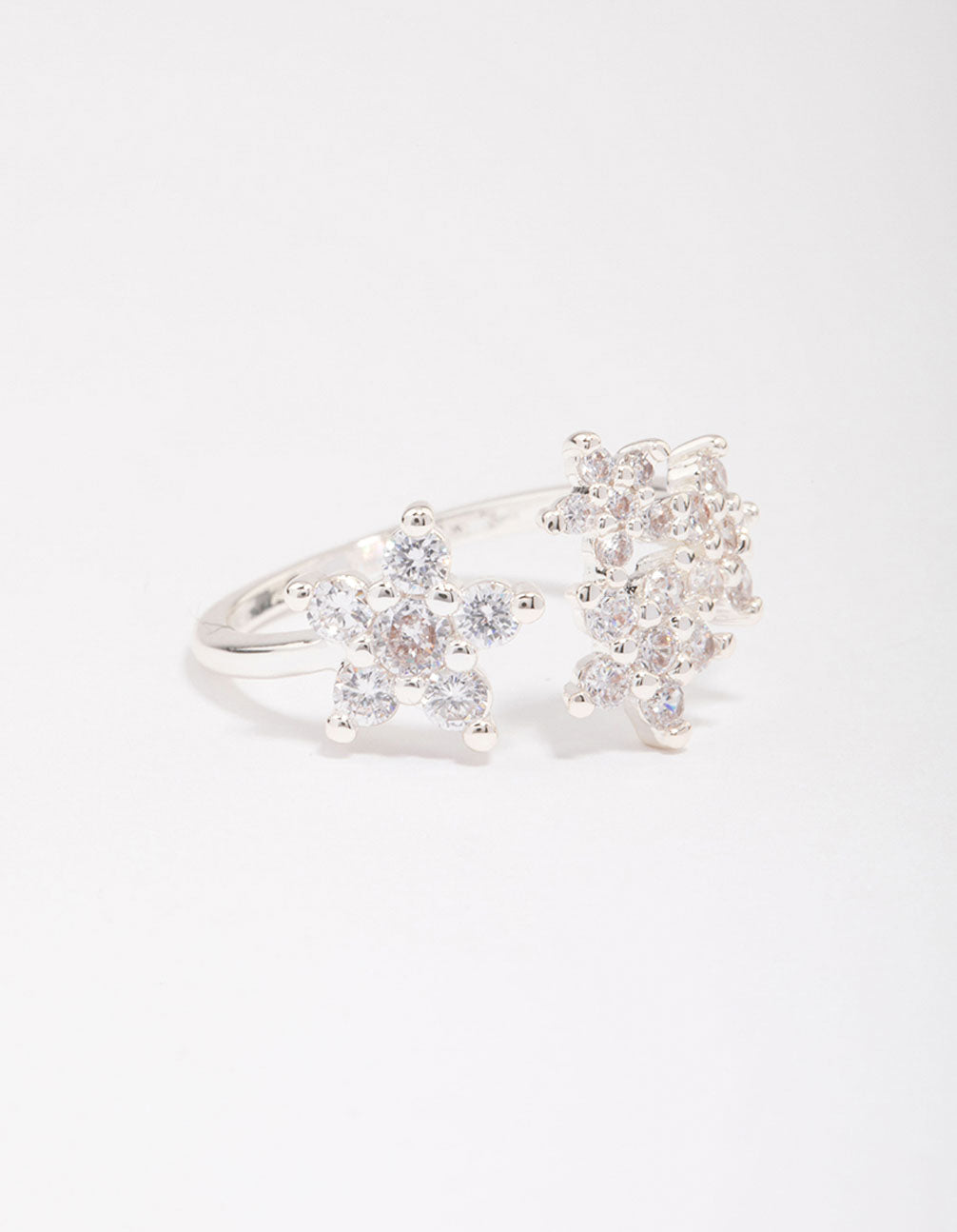 - This lovely ring has a stunning, silver-plated settling and features cubic zirconia crystals in a floral formation.