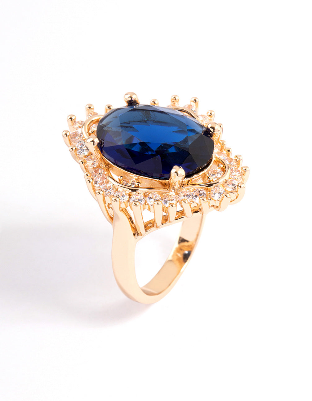 Make a statement with this gorgeous, large oval ring - designed with an eye-catching blue stone in the centre, framed with delicate diamantes for a luxe look.