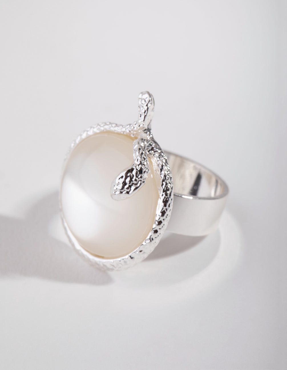 An elegant snake embellishment lends a luxurious vibe to this fashion ring. Boasting a white dome on a silver-toned setting, this ring is certain to turn heads!