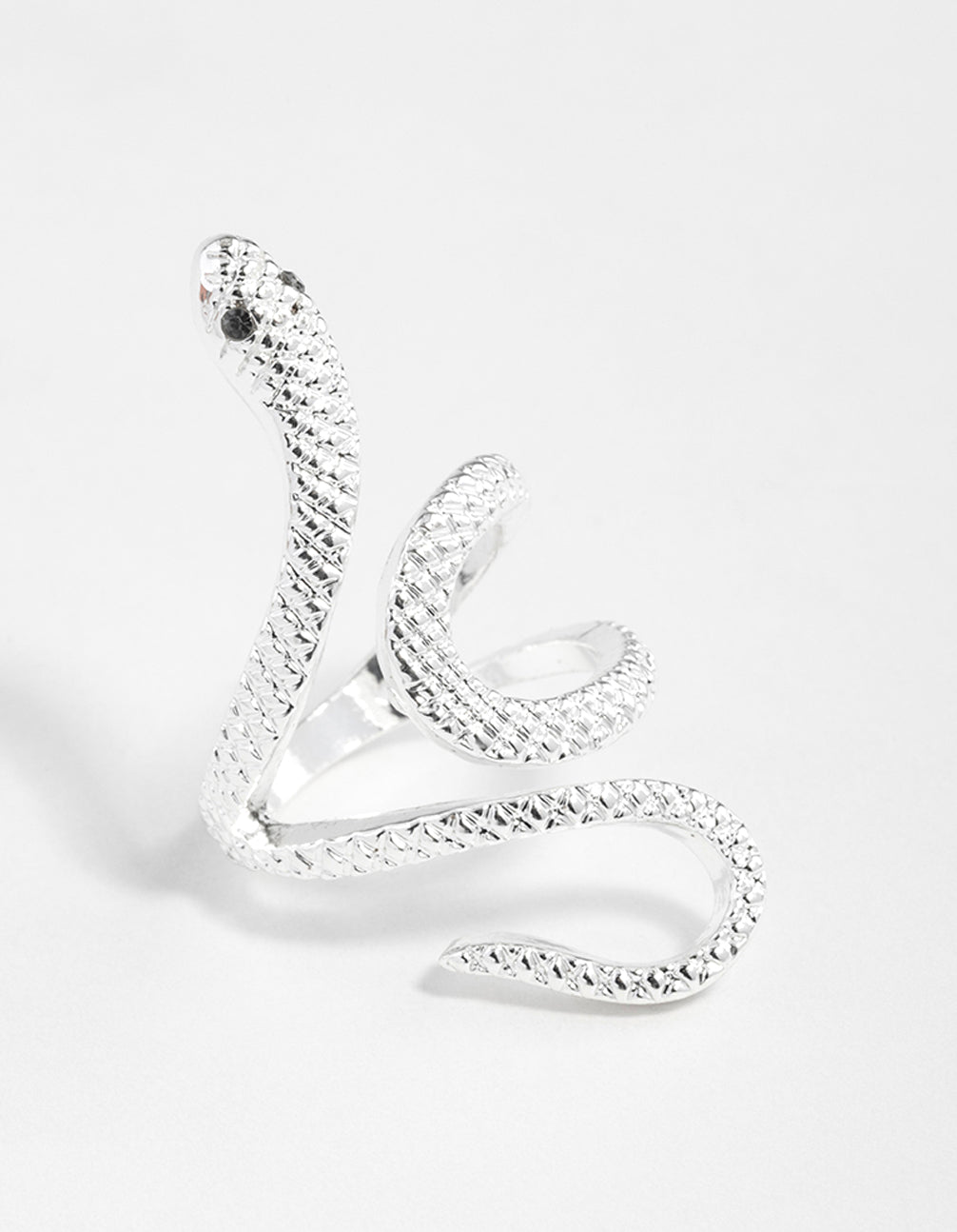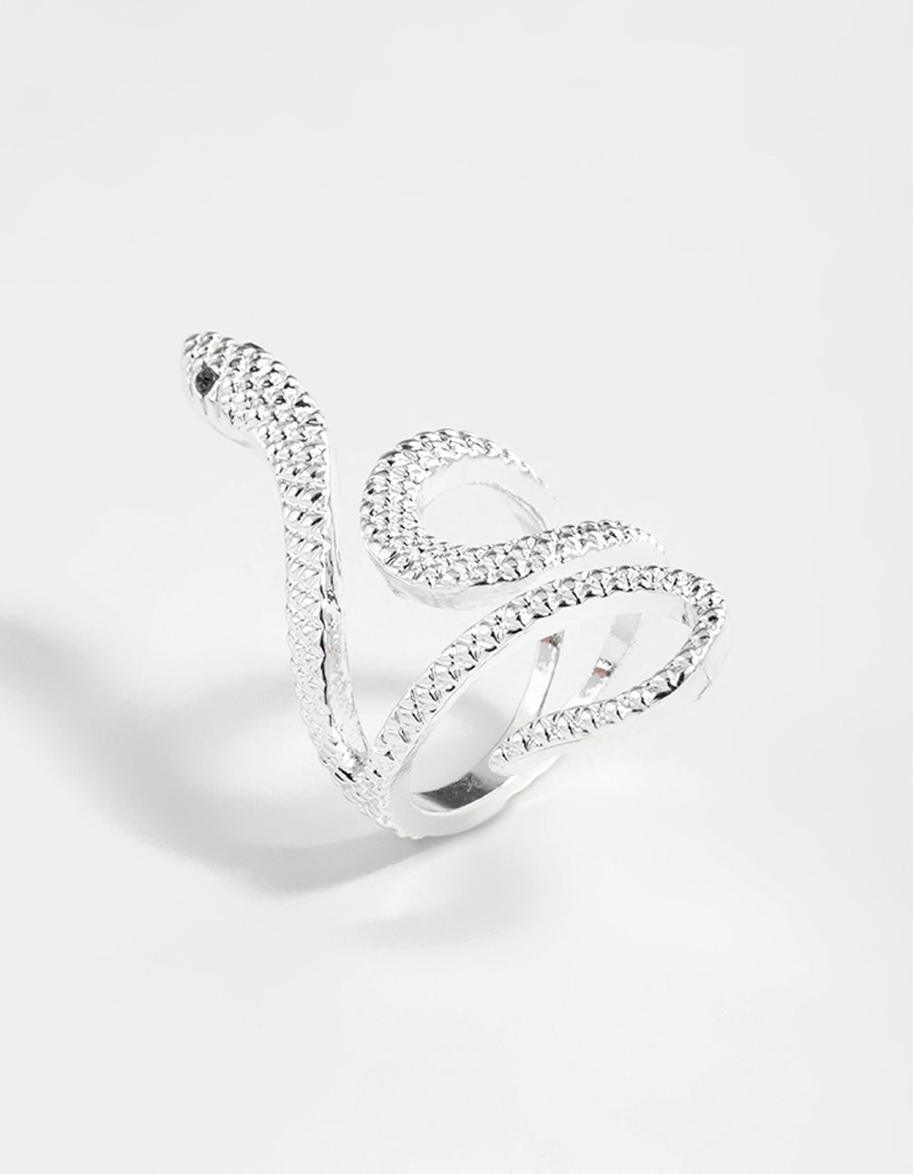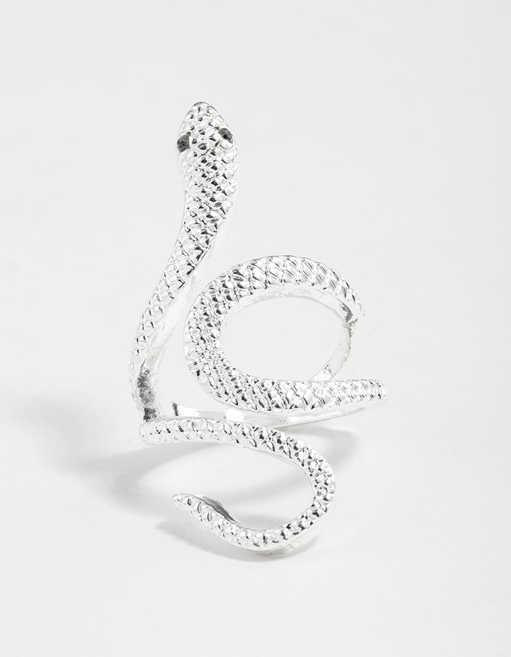 Make a statement in a stunning fashion ring. Stack with other styles for extra impact or wear alone for a refined addition to your ensemble. This ring boasts a textured silver-toned snake design.