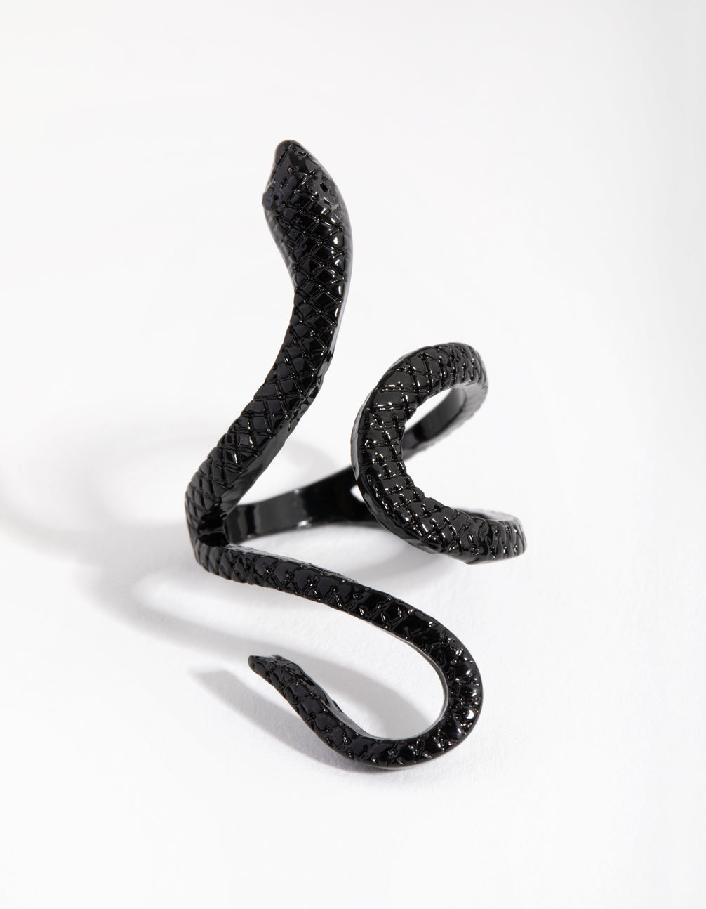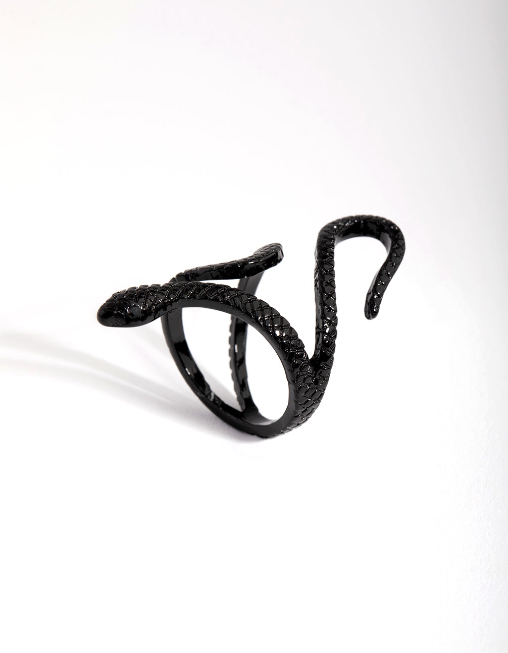 Mix up your look with new rings! They can be stacked together for maximum impact, or worn on their own for a considered look. This ring is matte black and features a slithering snake design. Stack it with other rings and get creative!