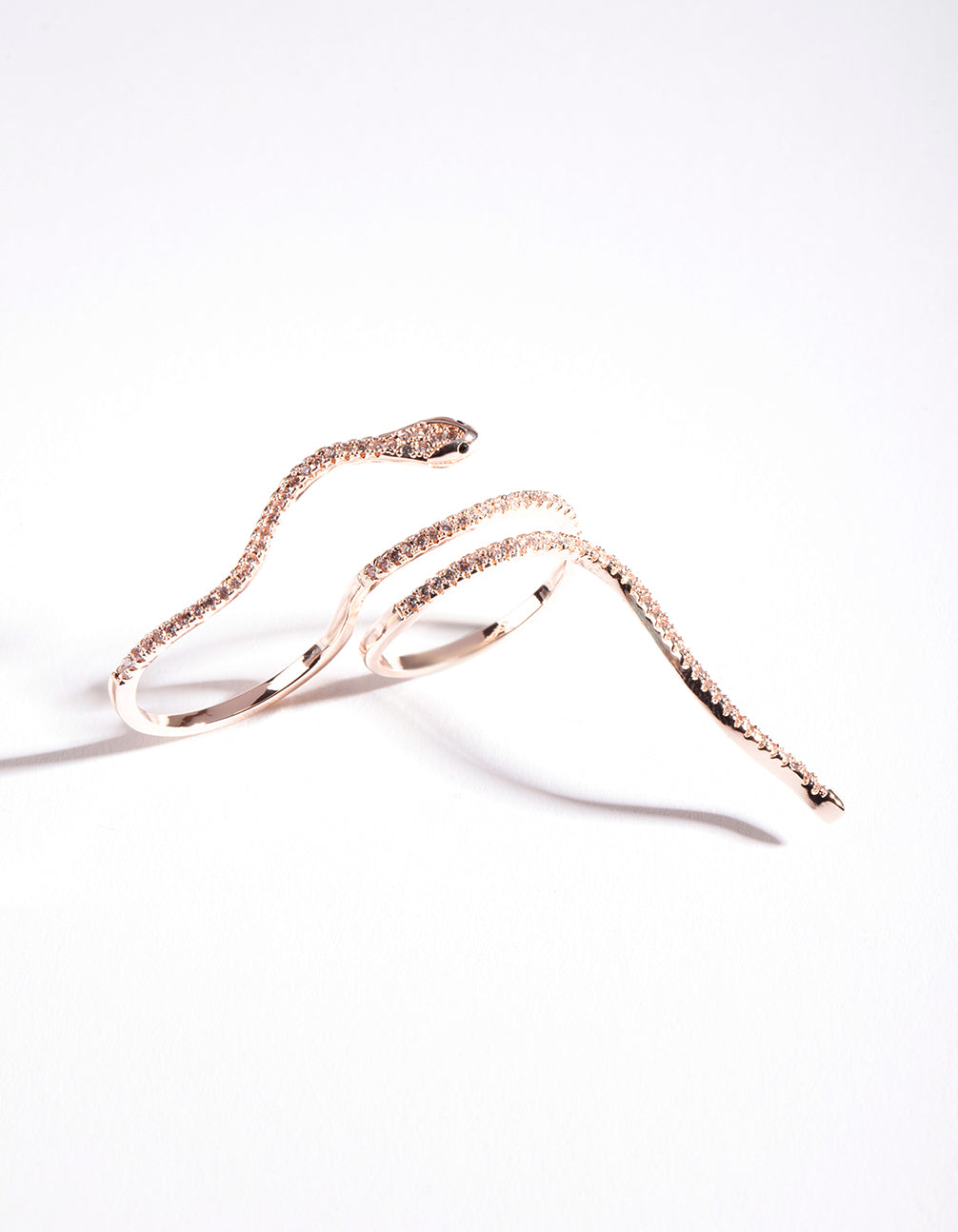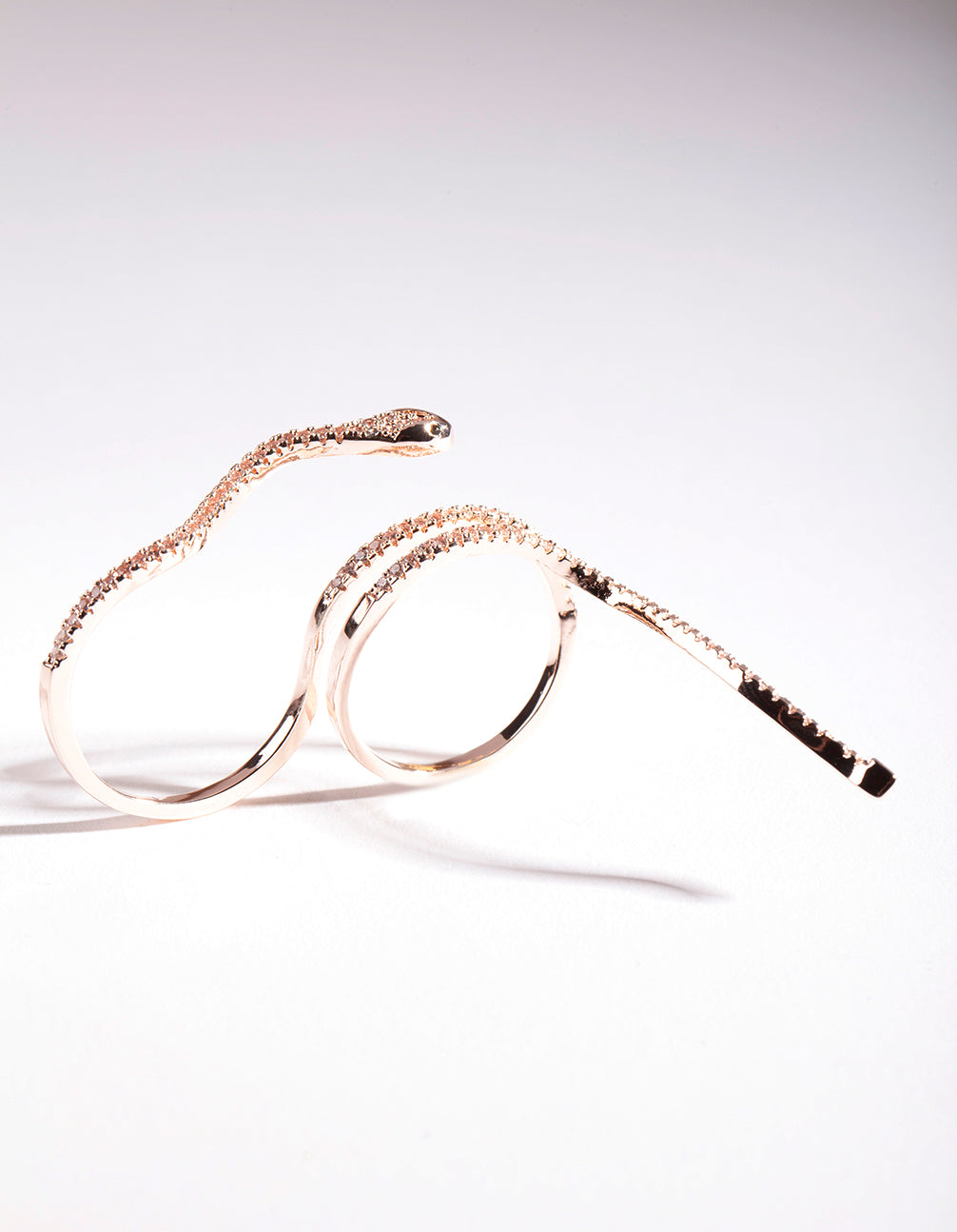 Rose Gold Cubic Zirconia Snake Multi Finger Ring