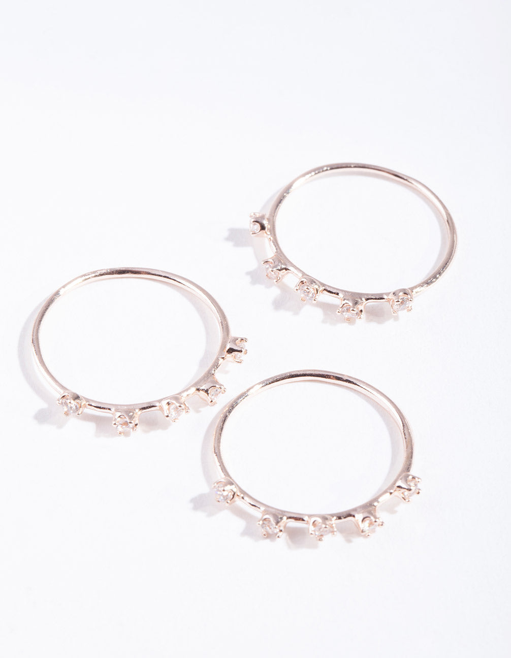 Rose Gold Cubic Zirconia Pattern Ring Stack