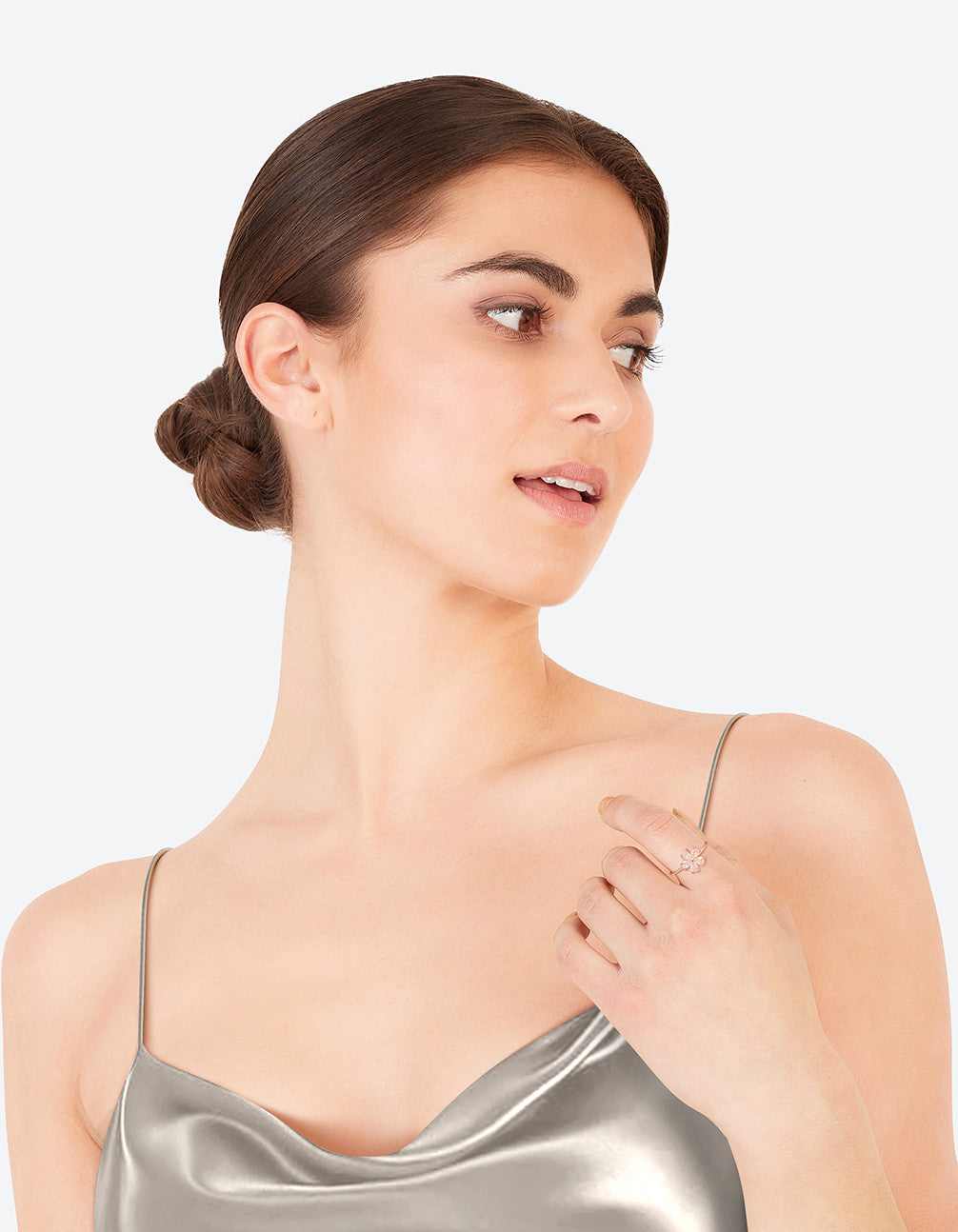 Add some luxury to your look with rings featuring cubic zirconia stones, which sparkle with the clarity and brilliance of a true diamond. This rose-gold-toned ring features an intricate daisy design. Enjoy a ring with some bling!