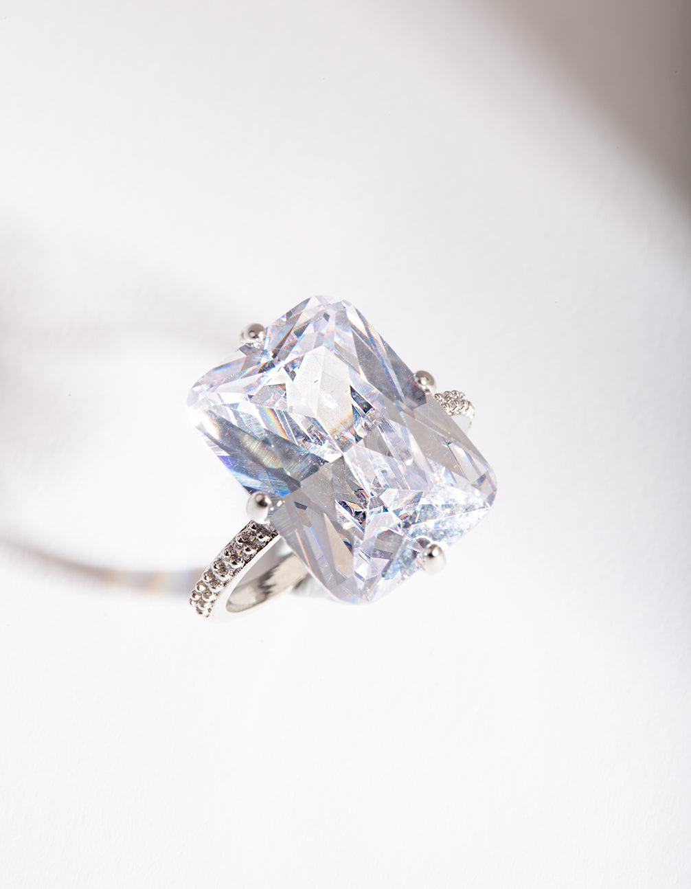 Make a statement in a stunning fashion ring. Stack with other styles for extra impact or wear alone for a refined addition to your ensemble. This ring features an engagement style in a silver tone.