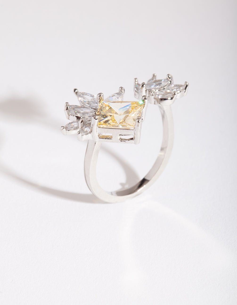 Elevate your look with this silver-toned cubic zirconia citrine open leaf ring.