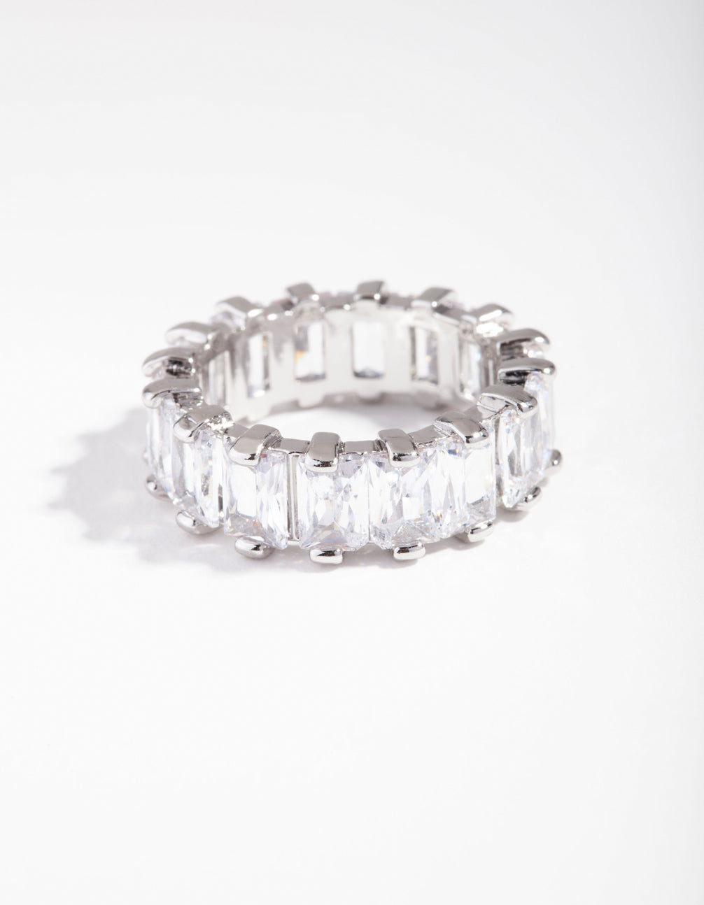 Rhodium Cubic Zirconia Rectangular Band Ring
