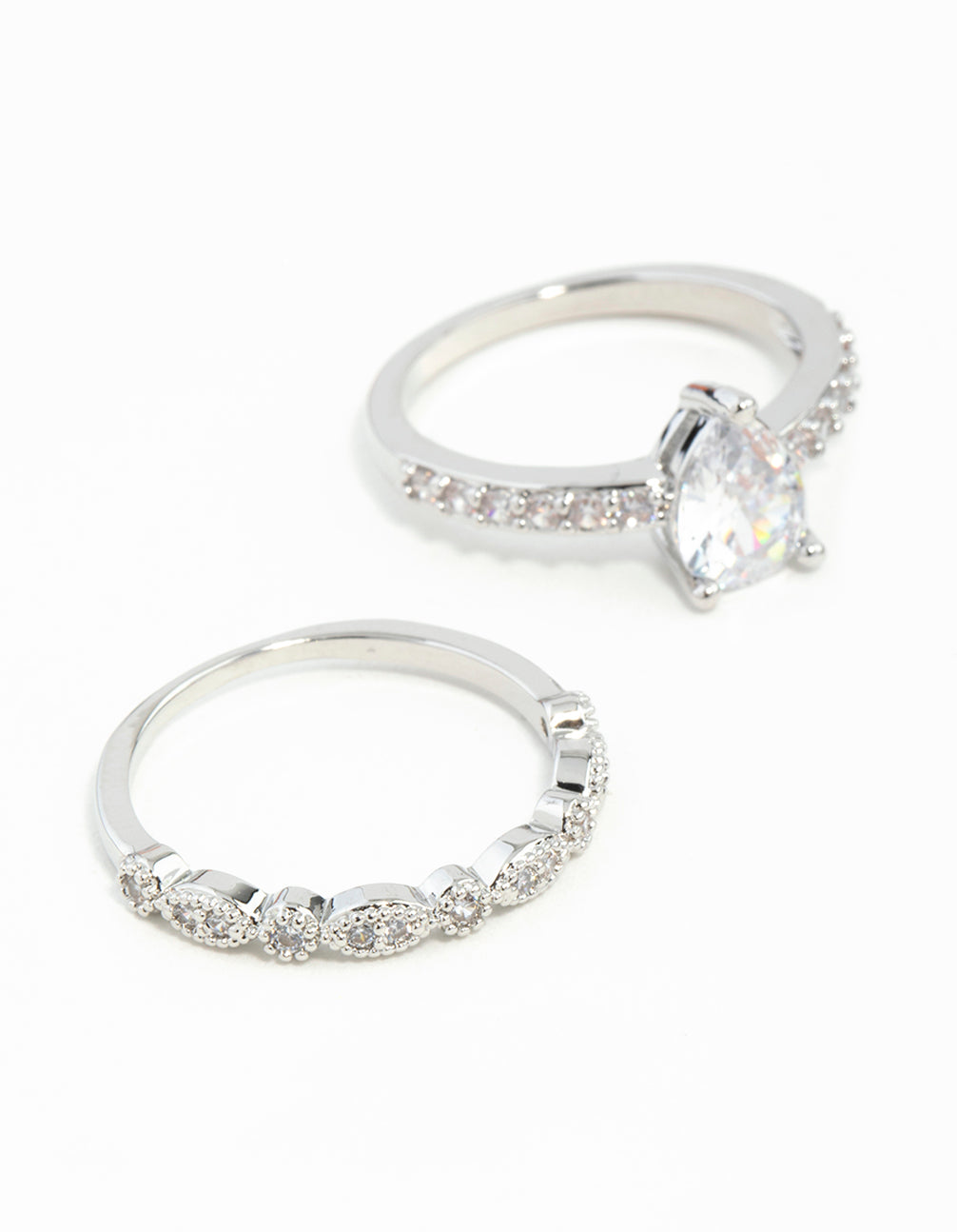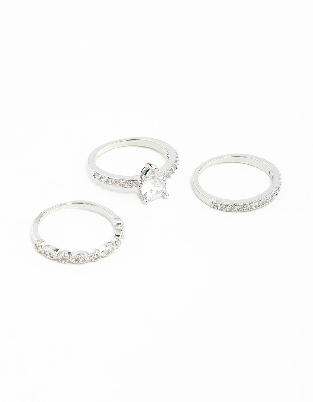 Silver Teardrop Cubic Zirconia Ring Stack Silver Teardrop Cubic Zirconia Ring Stack Silver Teardrop Cubic Zirconia Ring Stack