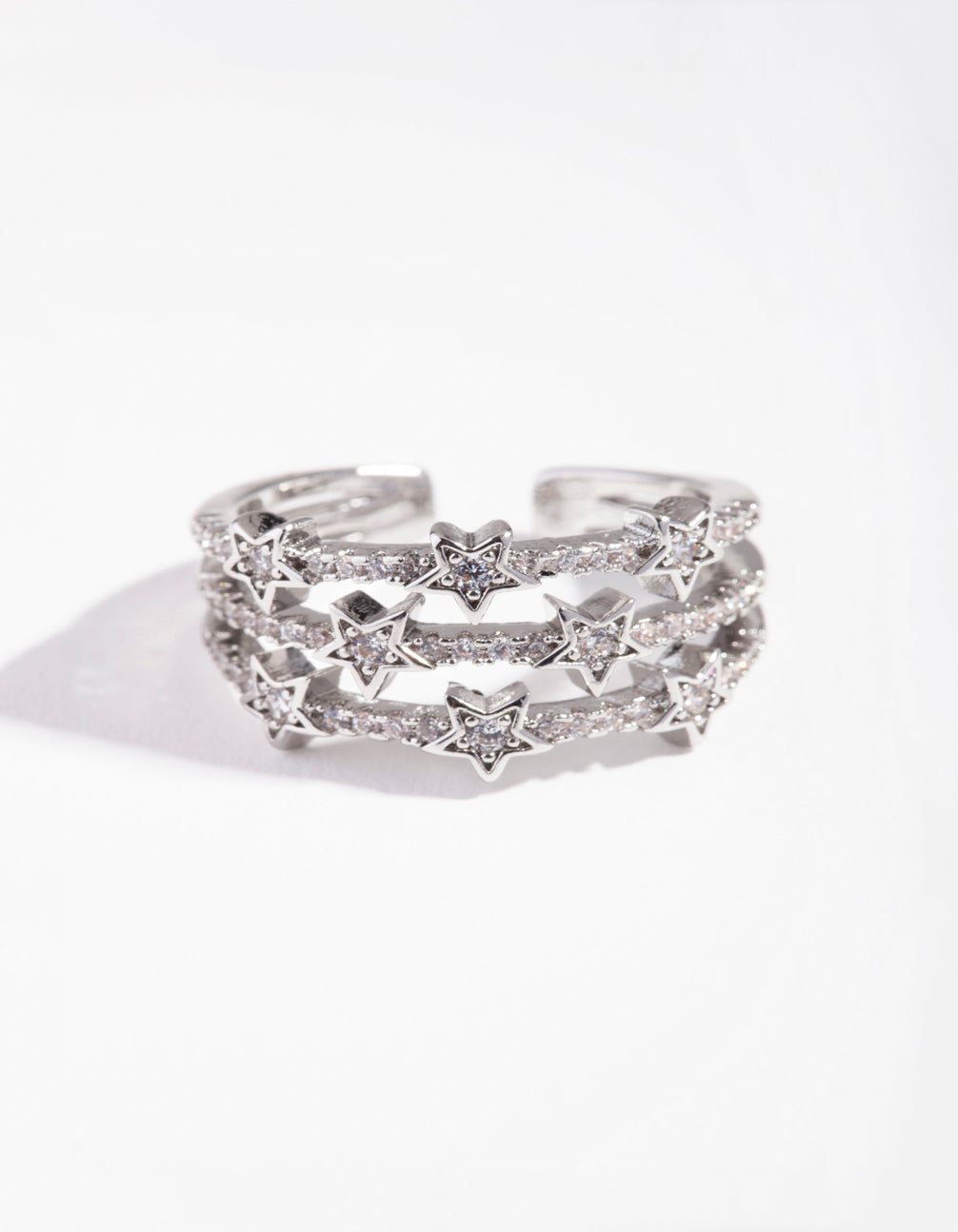 Let your ring stack shine bright with Lovisa fashion rings. This silver-toned ring features a stunning cubic zirconia embellished triple star band design and is perfect on its own or stacked with others.