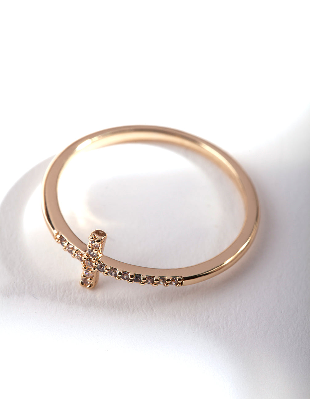 Gold Cubic Zirconia Cross Ring Gold Cubic Zirconia Cross Ring