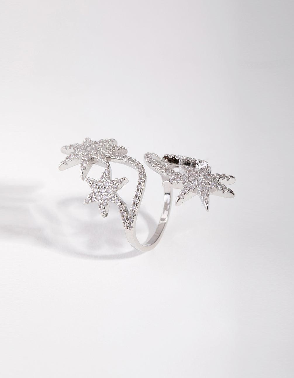 Silver Cubic Zirconia Spiral Stars Ring