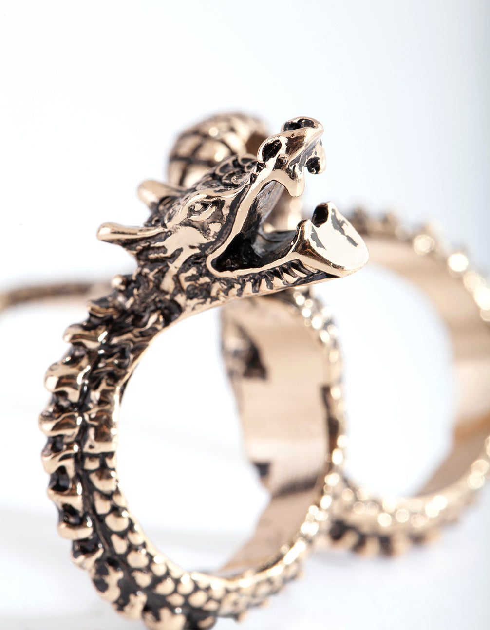 This antique gold-tone ring features a multifinger etched dragon design.åÊ