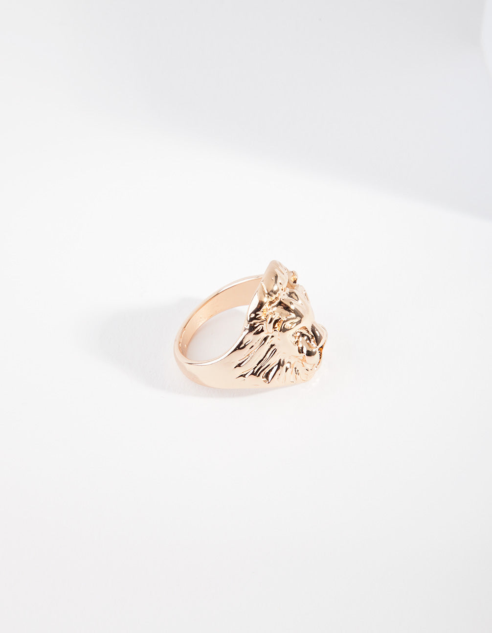Elevate your outfit with this gold-toned statement lion head ring, guaranteed to complete any ring stack.
