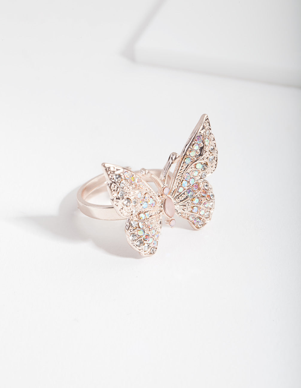 Lovisa loves a butterfly moment! This rose-gold-toned ring features a glitzy butterfly design. Layer it with other rose-gold pieces for a feminine finish.