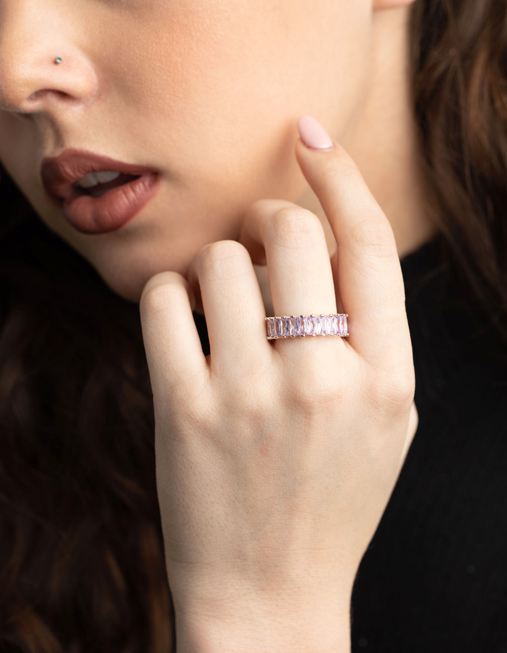 Dazzle with cubic zirconia! These lab-created crystals are designed to mirror the depth, colour and clarity of true precious stones. When crystal toned, they resemble genuine diamonds and when tinted with red, blue or green they sparkle like rubies, sapphires and emeralds. This stunning cocktail-style ring boasts a cubic-zirconia embellished design. Wear it with a formal outfit and make a statement!