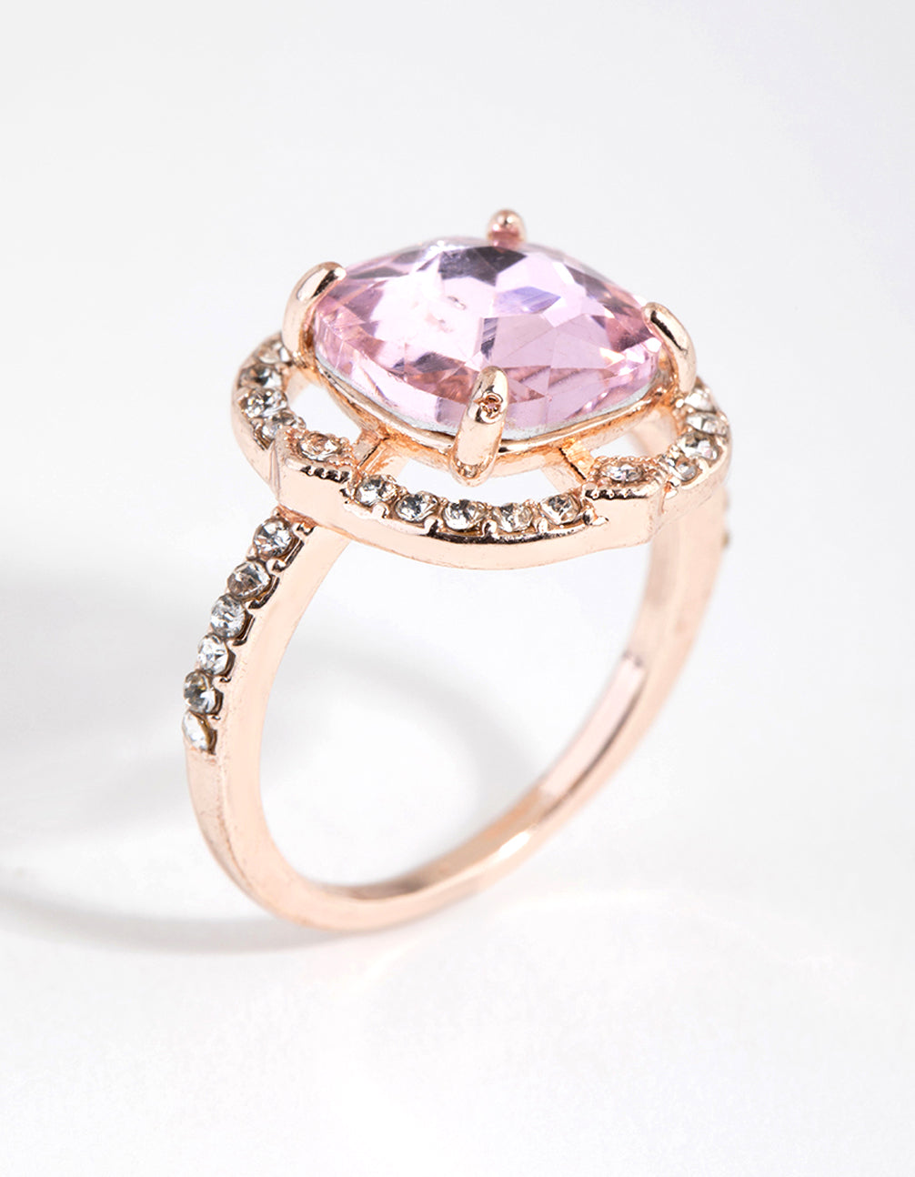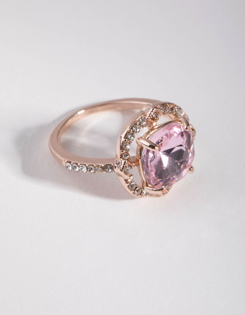Sparkle and shine with opulent rings! This lovely ring is rose-gold toned, and features a large pink stone at its centre. It's surrounded by diamantes for that little something extra, wear it to add a glamorous finishing touch to a formal outfit.