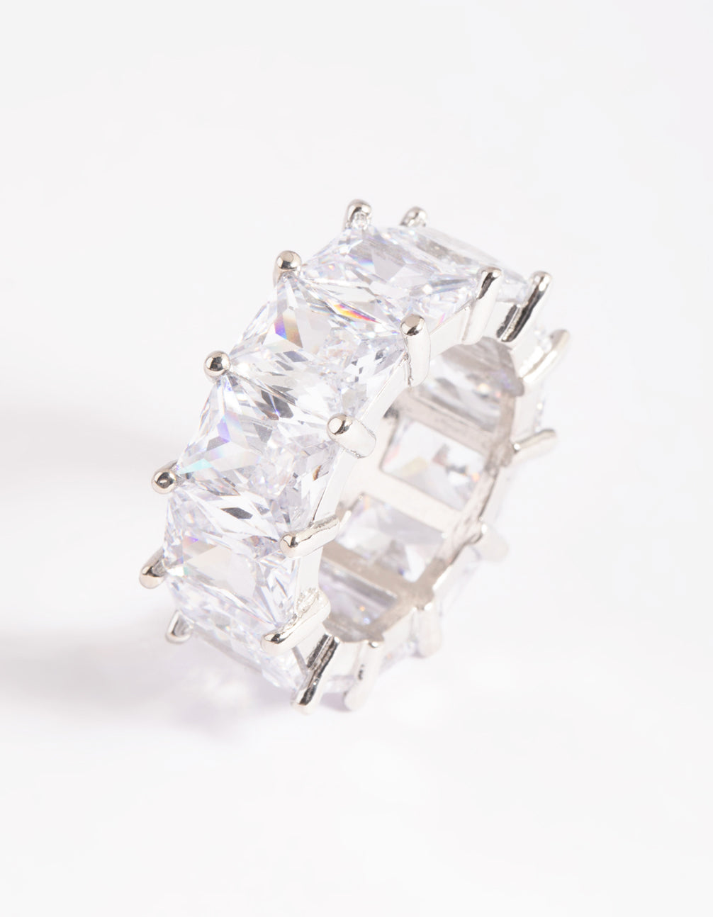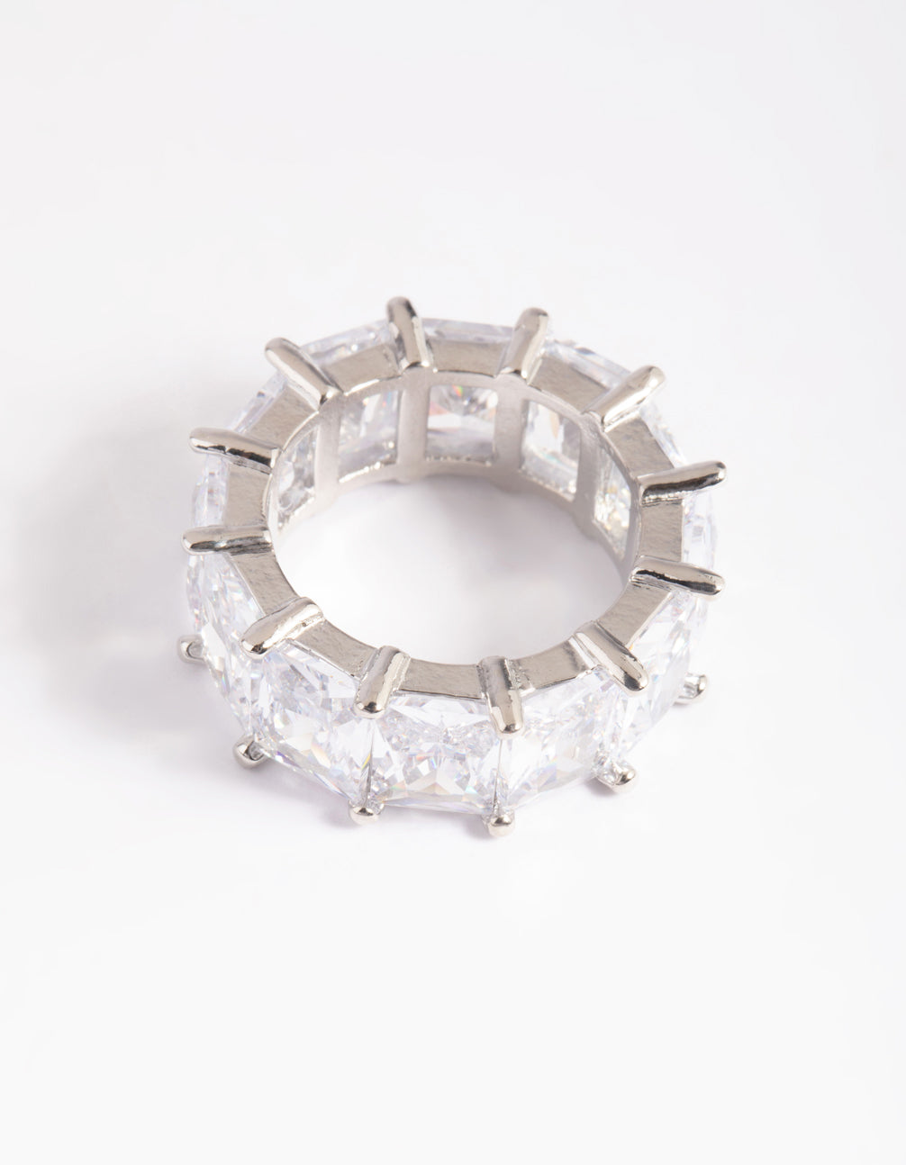 Rhodium Cubic Zirconia Baguette Statement Ring