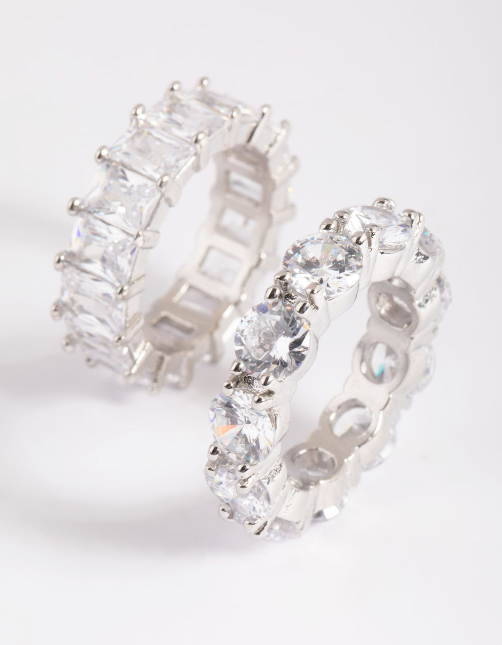 Silver Cubic Zirconia Baguette Ring Stack Pack