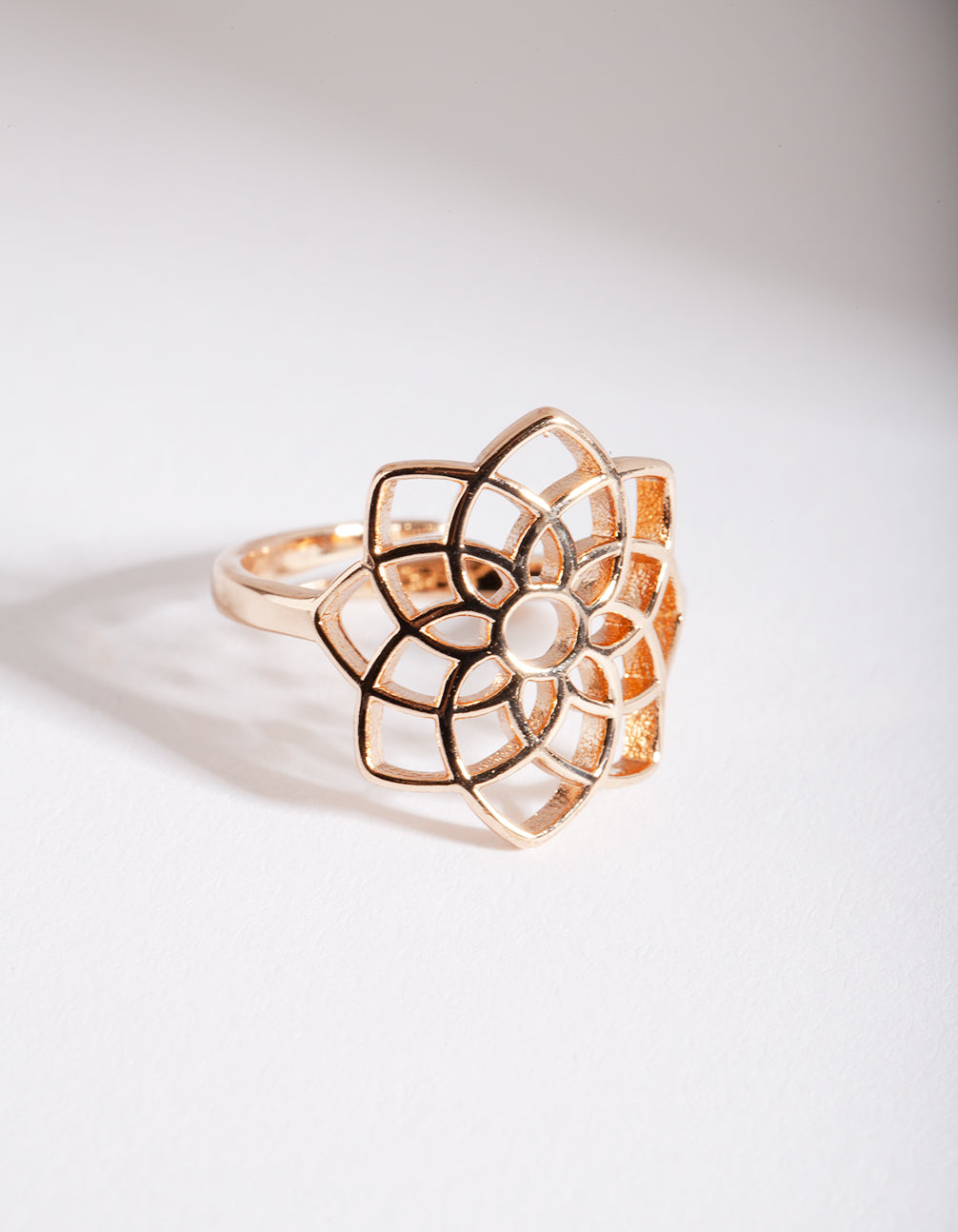 Make a statement in a stunning fashion ring. Stack with other styles for extra impact or wear alone for a refined addition to your ensemble. This ring comes in a gold tone and feature a Crown Chakra symbol.