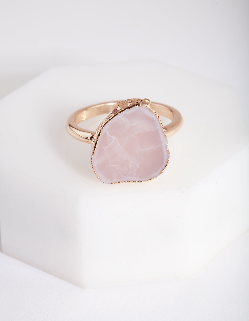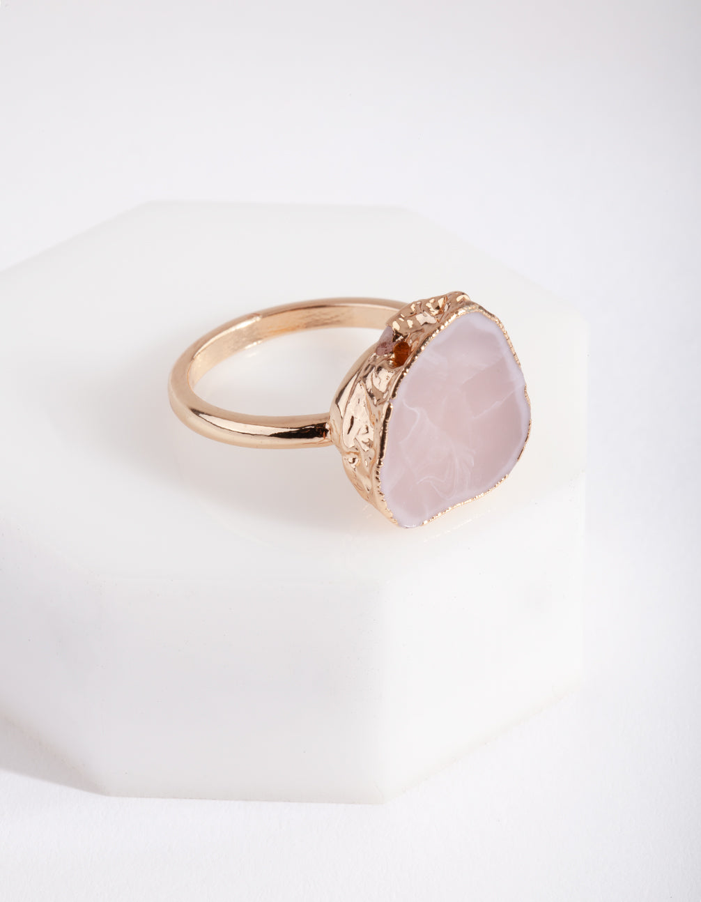 Make a statement in a stunning fashion ring. Stack with other styles for extra impact or wear alone for a refined addition to your ensemble. This ring features a neutral pink stone design on a gold toned setting.