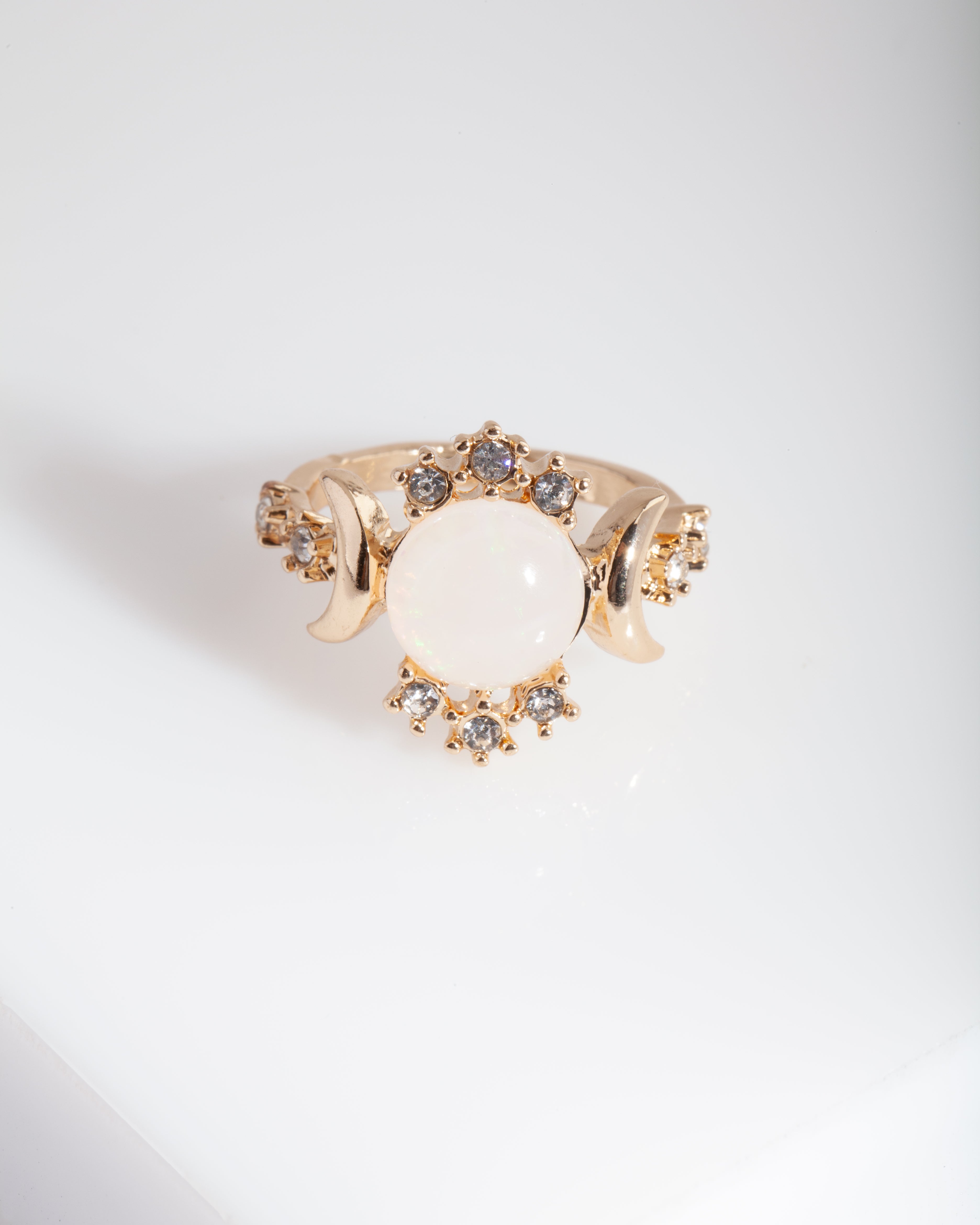 Gold Synthetic Opal Moon Diamante Ring Gold Synthetic Opal Moon Diamante Ring Gold Synthetic Opal Moon Diamante Ring