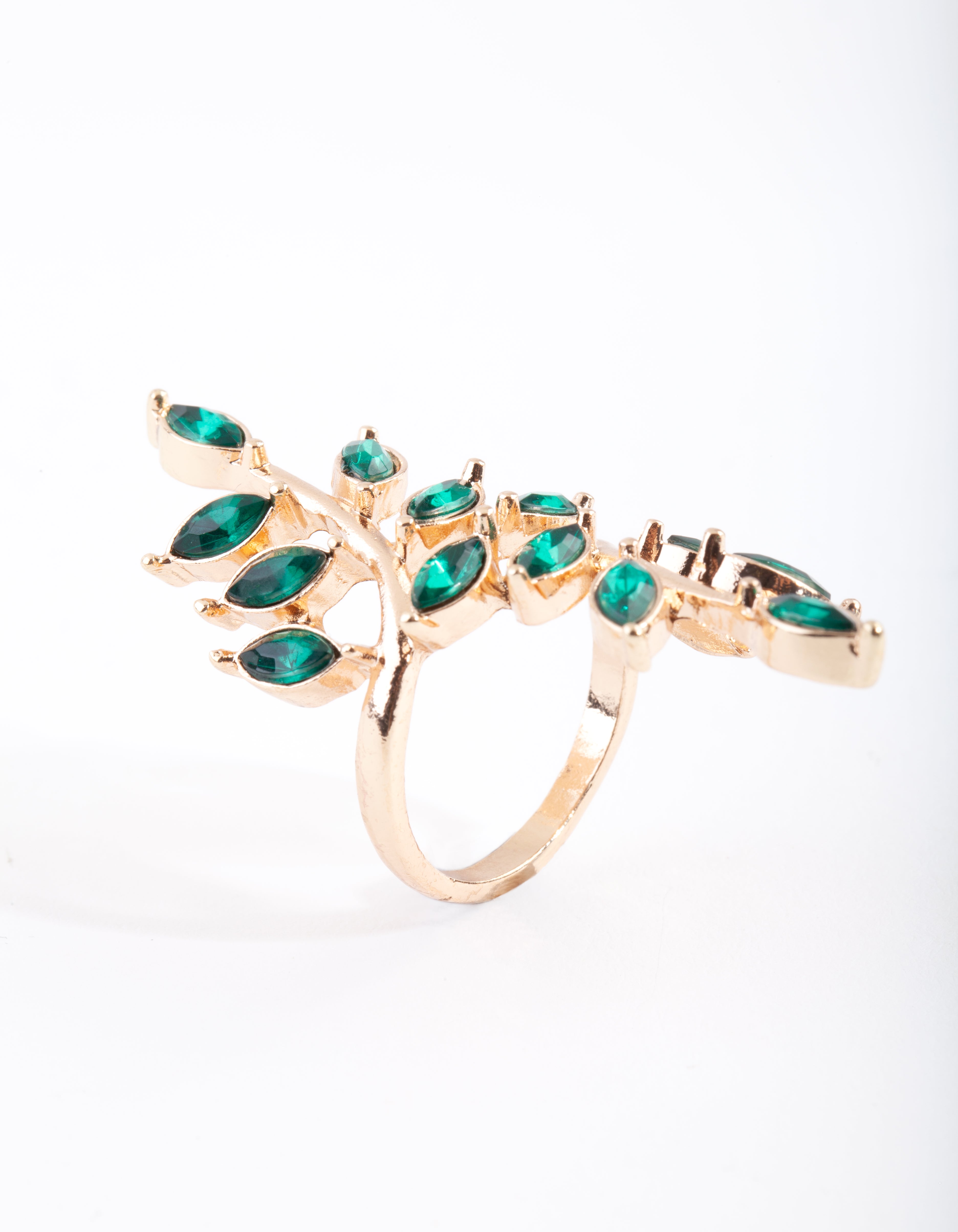 Gold Green Stone Leaf Ring