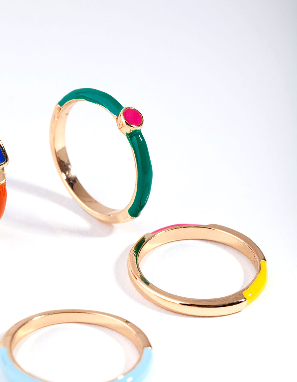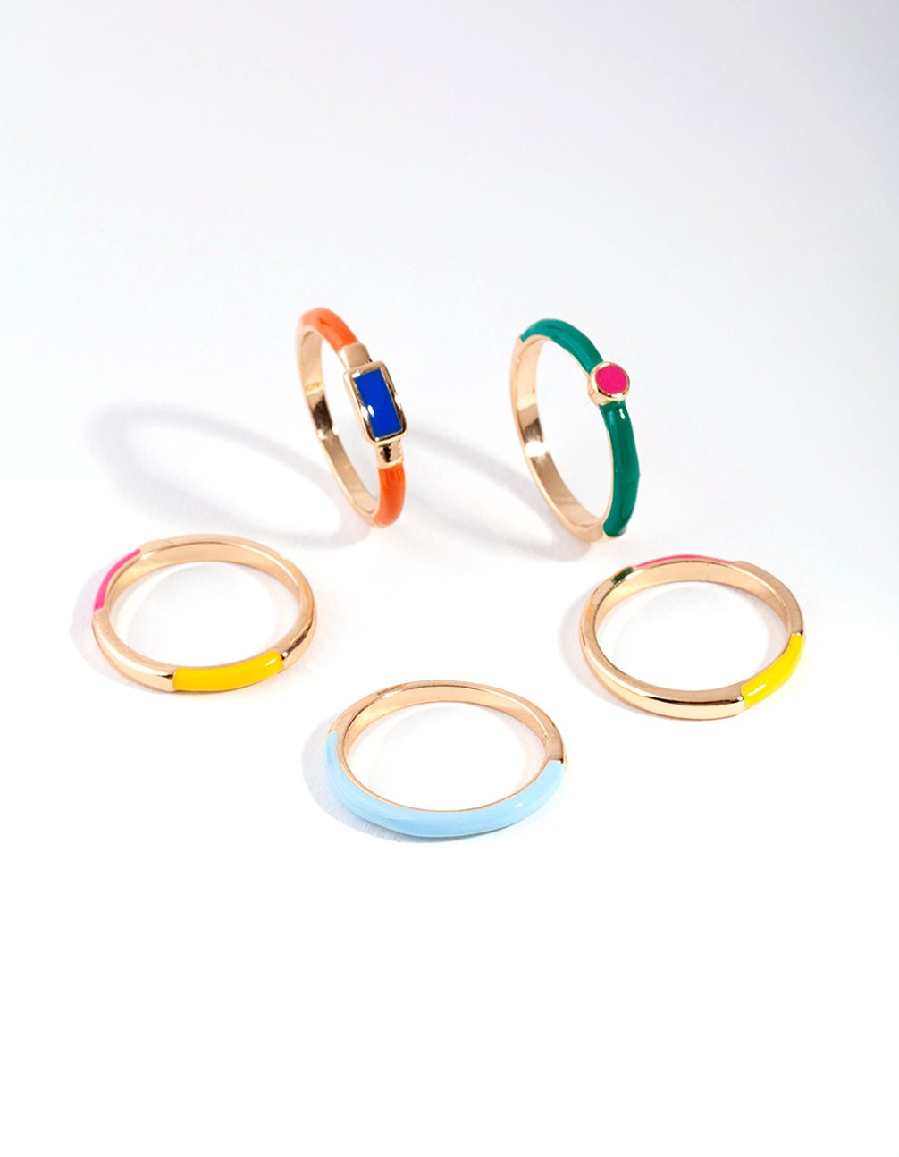 Raise your ring game with this stunning vintage-style gold-toned ring, which features five gorgeous multi-coloured rings that can be stacked together or worn with other rings to completely customise your look. They have a fun 70s vibe, so wear them and slip into another time!