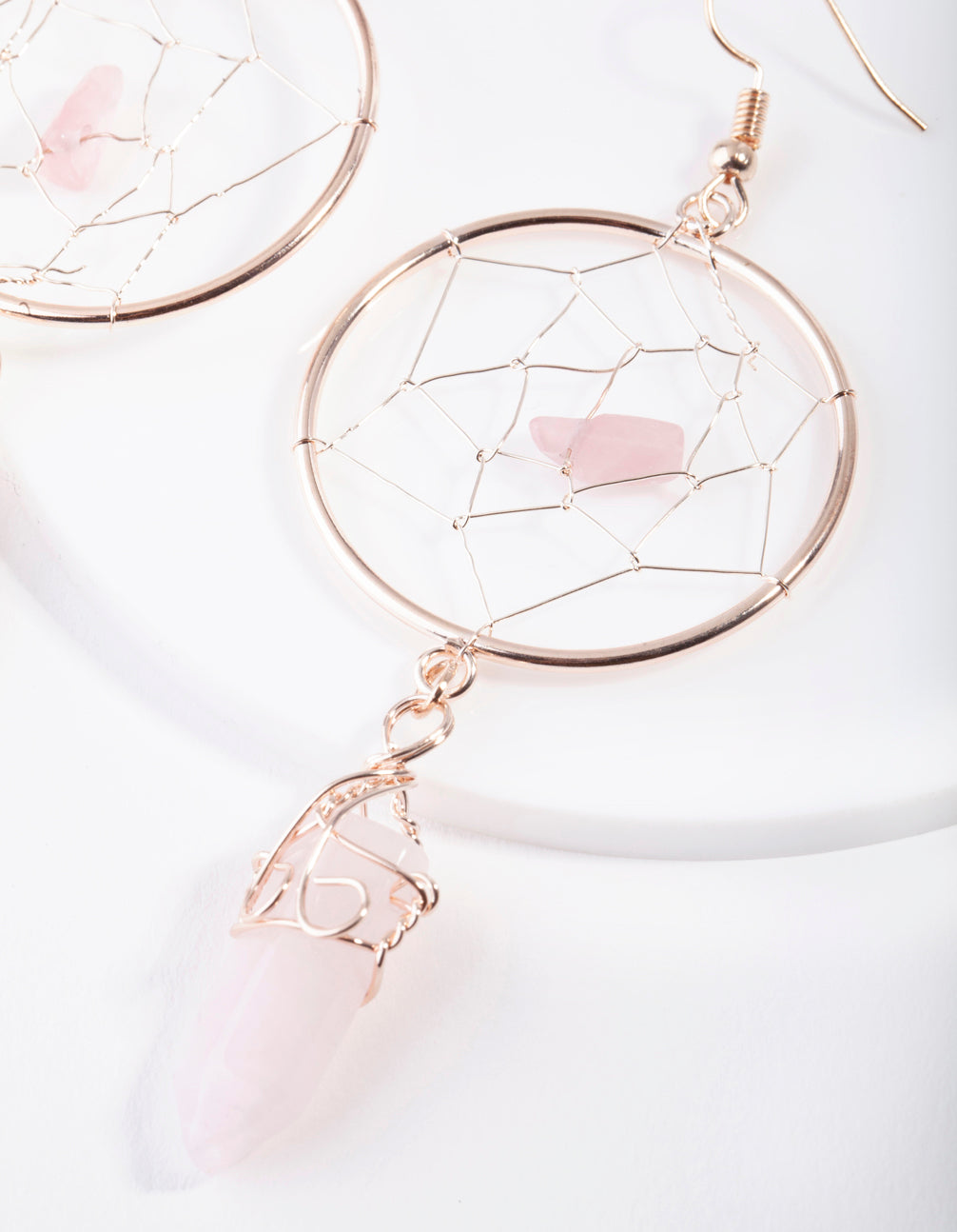 Rose Gold Dreamcatcher Rose Quartz Earrings