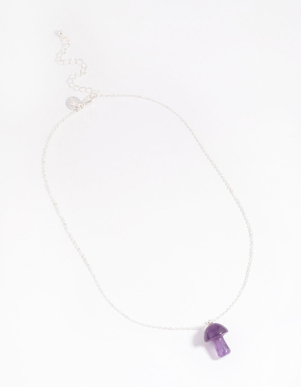 - Semi-Precious stones are natural minerals, each with their own properties and meaning. Style this Silver Amethyst Moon & Mushroom Pendant Necklace to channel tranquillity and promote healing.