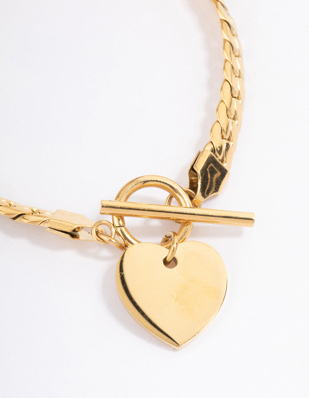 • Waterproof Gold Plated Stainless Steel Heart Fob Flat Chain Bracelet - link has visual effect only
