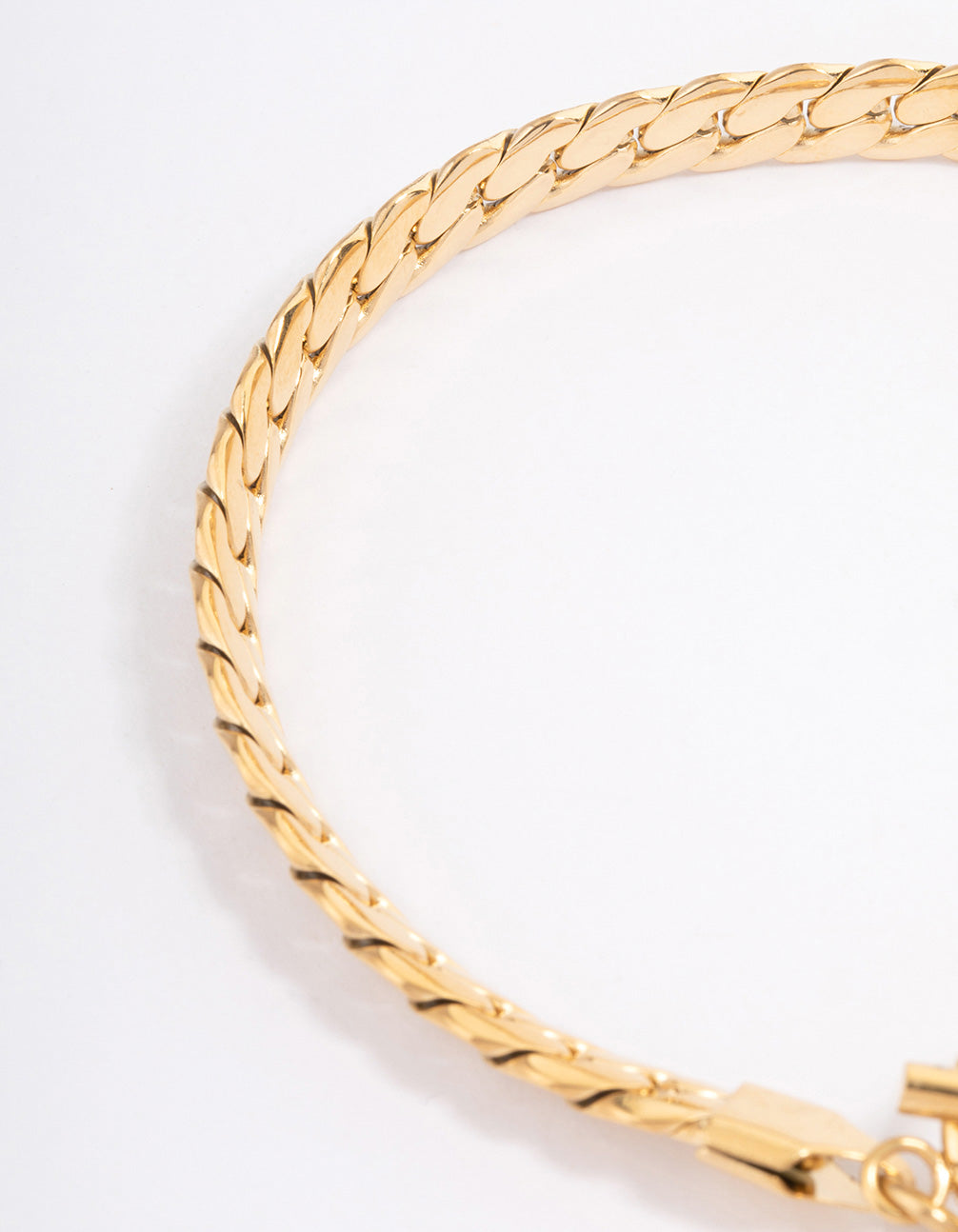 Waterproof Gold Plated Stainless Steel Heart Fob Flat Chain Bracelet