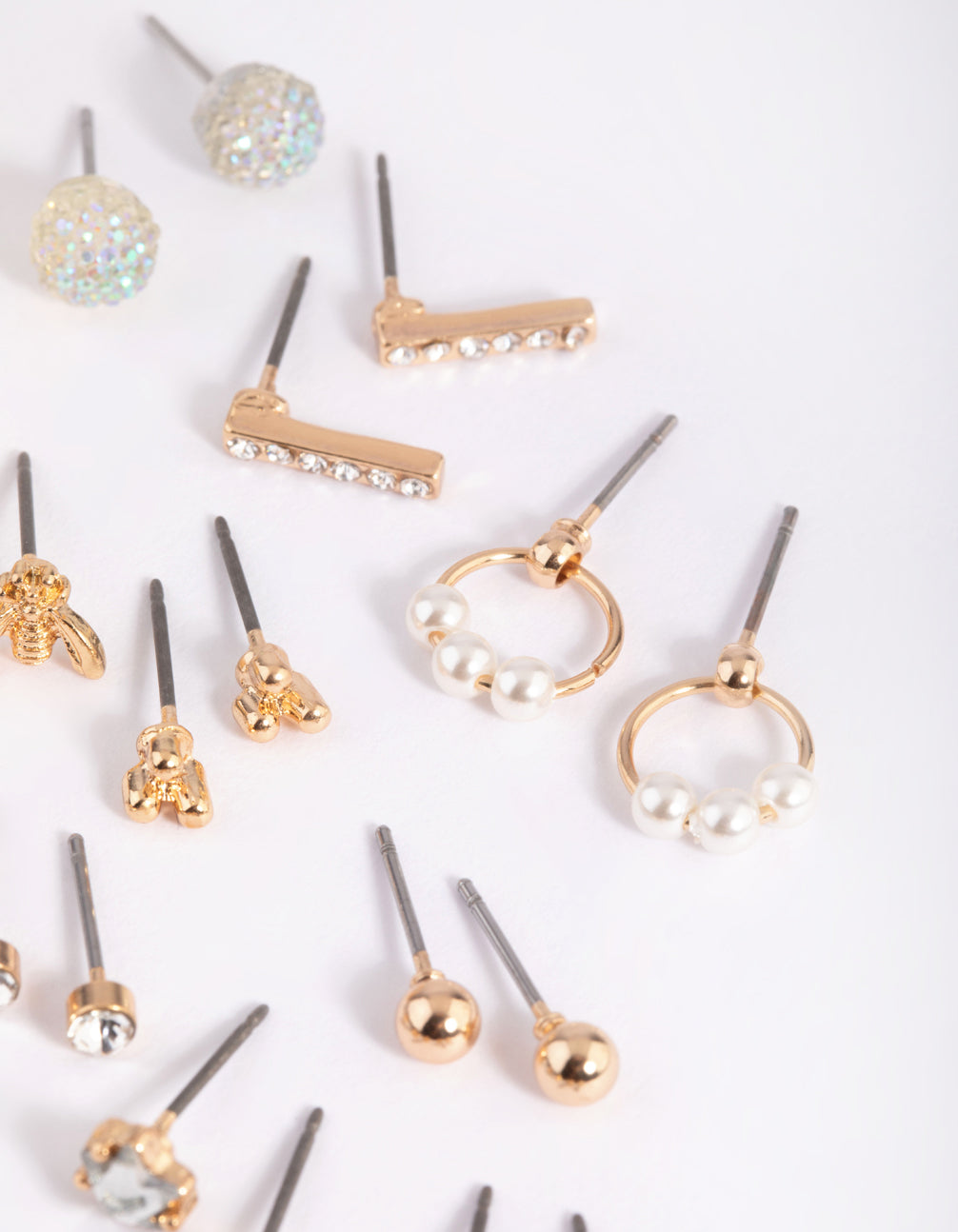 Mix them, match them, stack them! This earring pack features a variety of designs. Wear multiple pairs together, mix it up and wear a different earring on each ear or stack them up in a curated earring look. The options are endless, get creative!