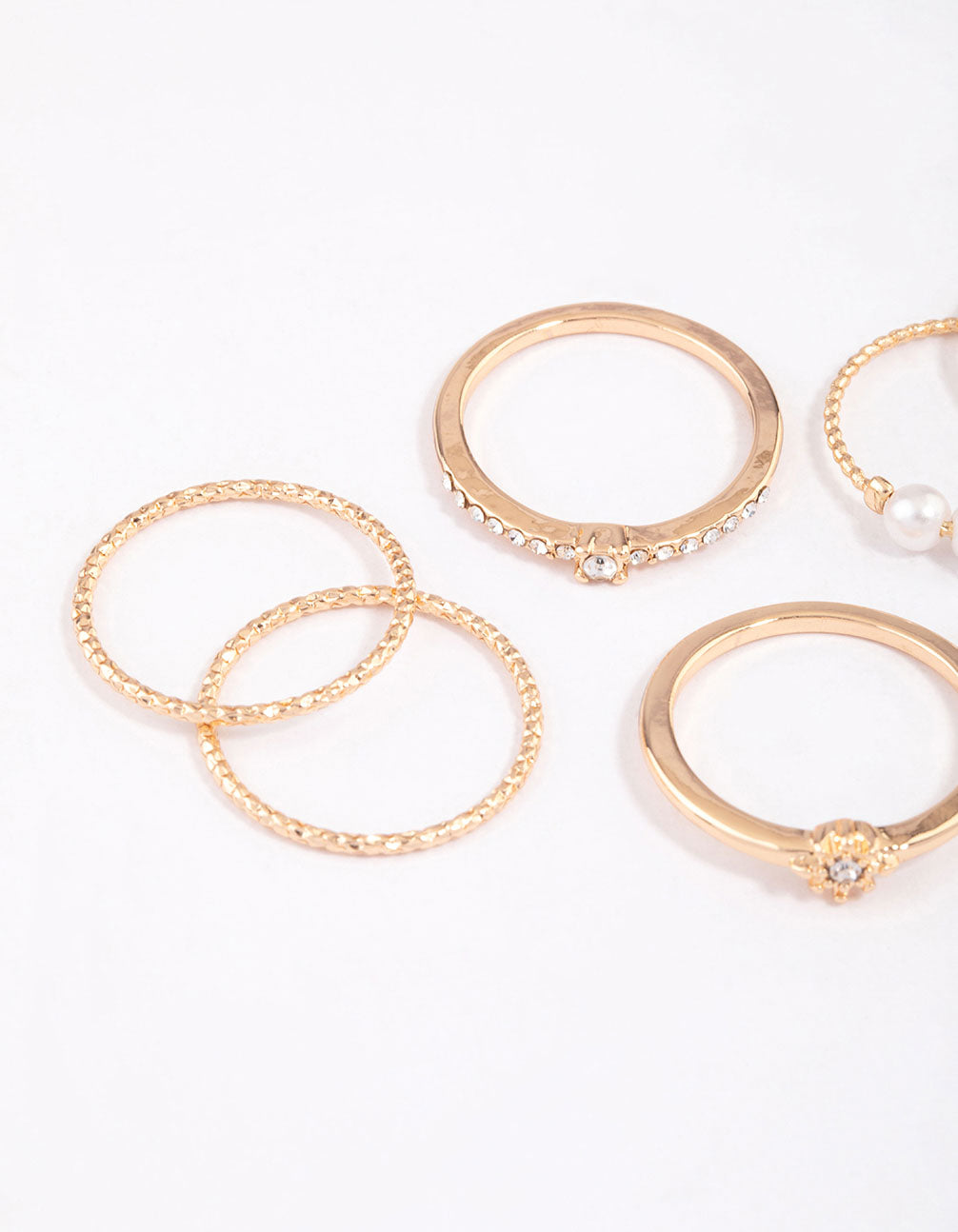 - Maximise your ring stack and embellish your look with this set of gold-toned, fine diamante and pearl rings.