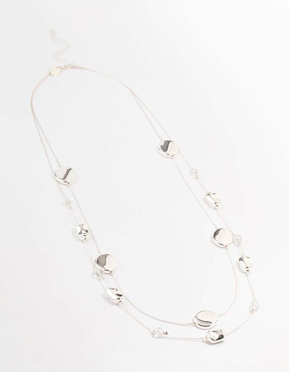 Shiny Silver 2 Row Mixed Bead Layered Necklace