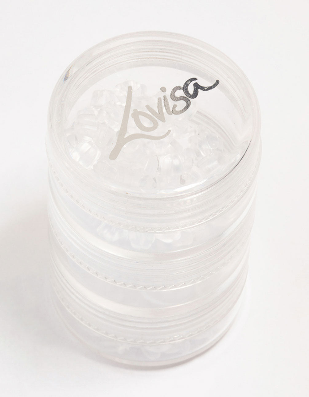 In need of an emergency earring back? Stock up with this set of three tubs, each filled with silicone earring backs. Perfect for keeping in your handbag, your desk and at your vanity!