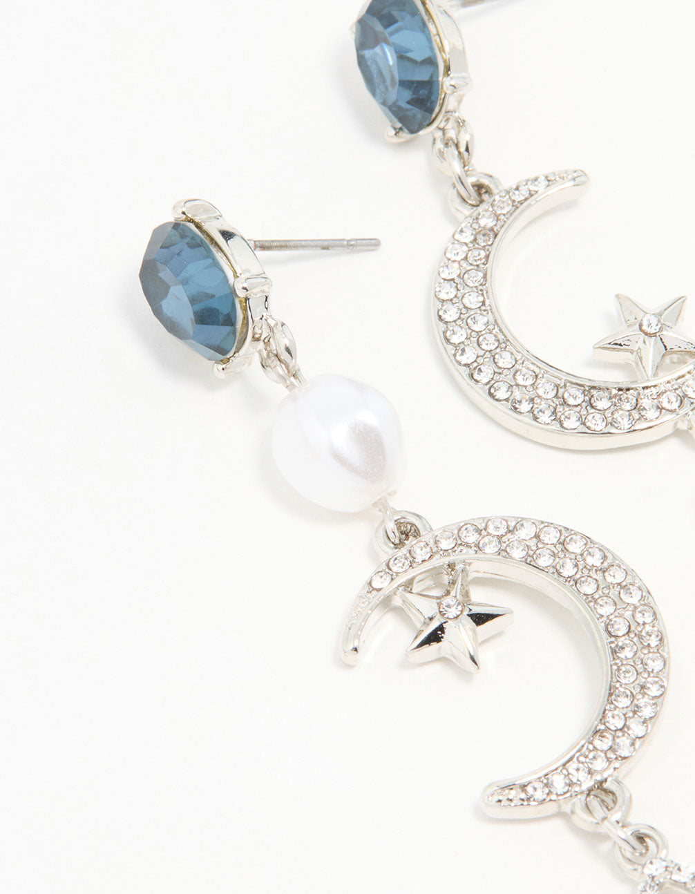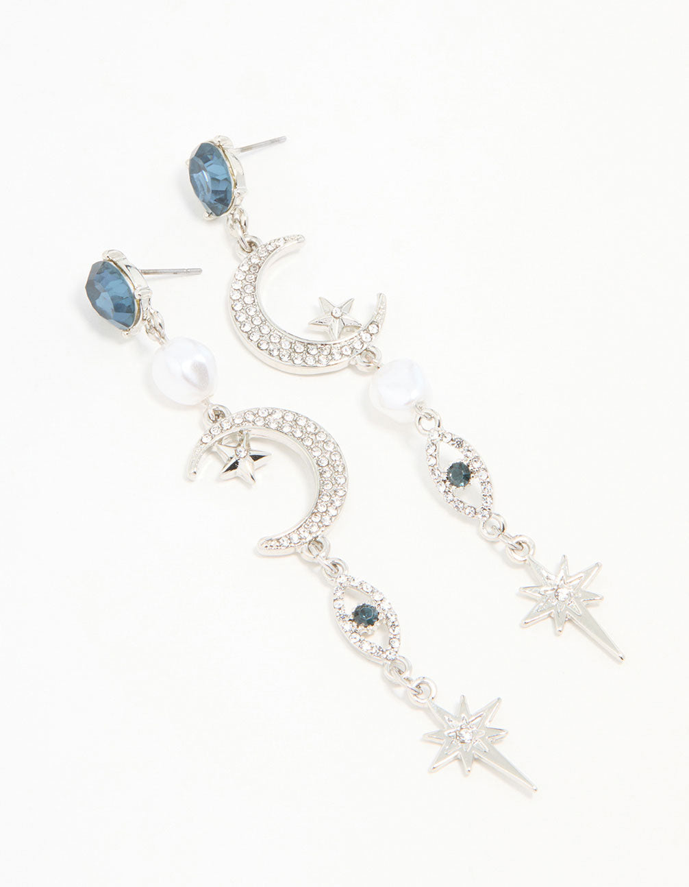 Silver Blue Diamante Celestial Drop Earrings