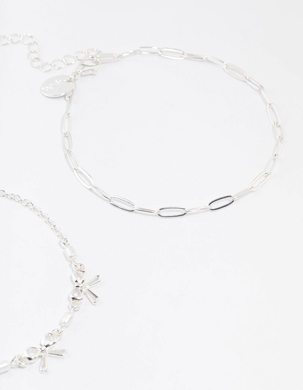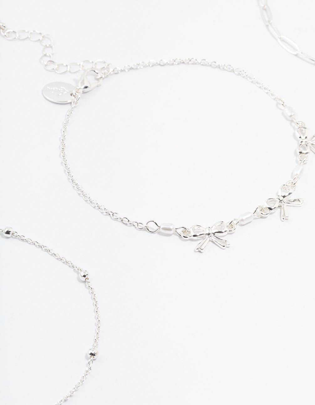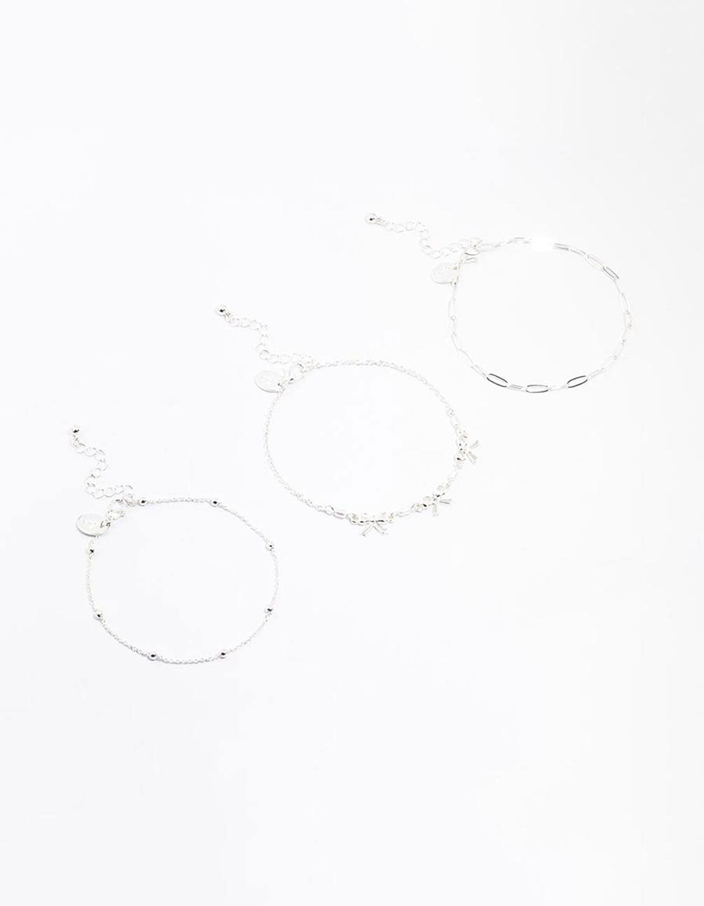 Silver Bow & Chain Mixed Anklets 3-Pack