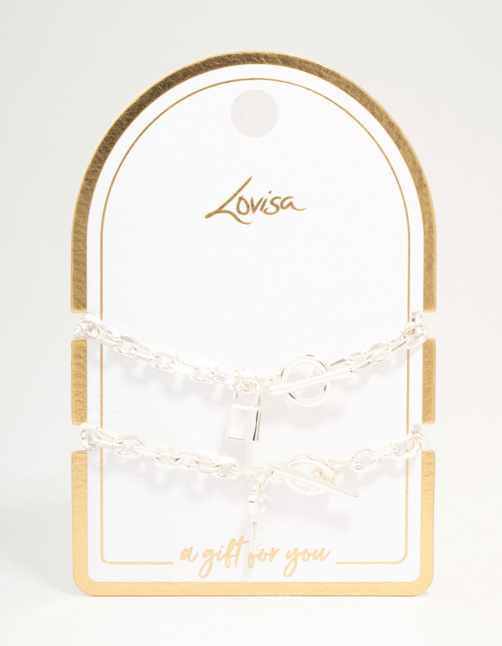 Silver Chunky Lock & Key Bracelets 2-Pack