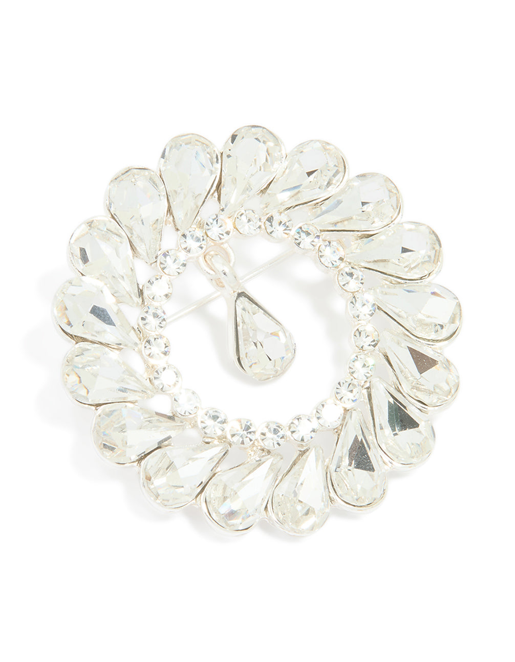 Silver Circular Diamante Drop Brooch
