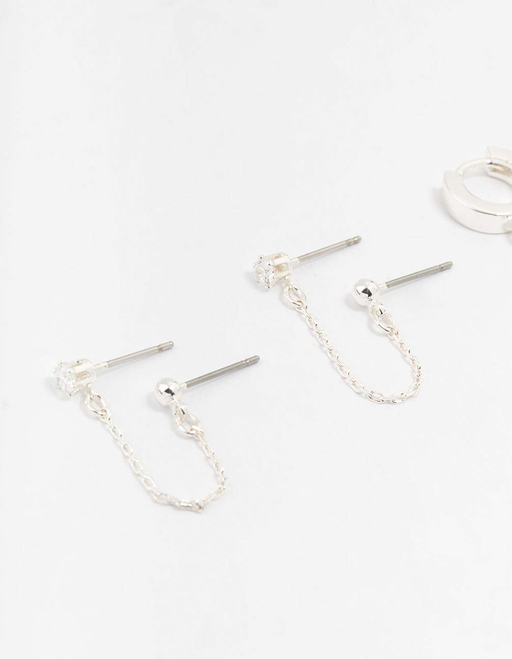 Silver Cubic Zirconia Chain Stud & Hoop Earrings 3-Pack