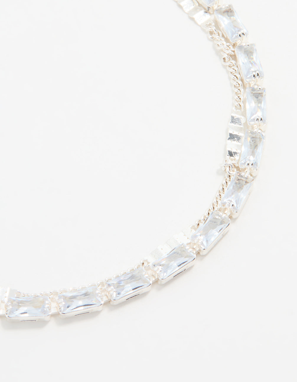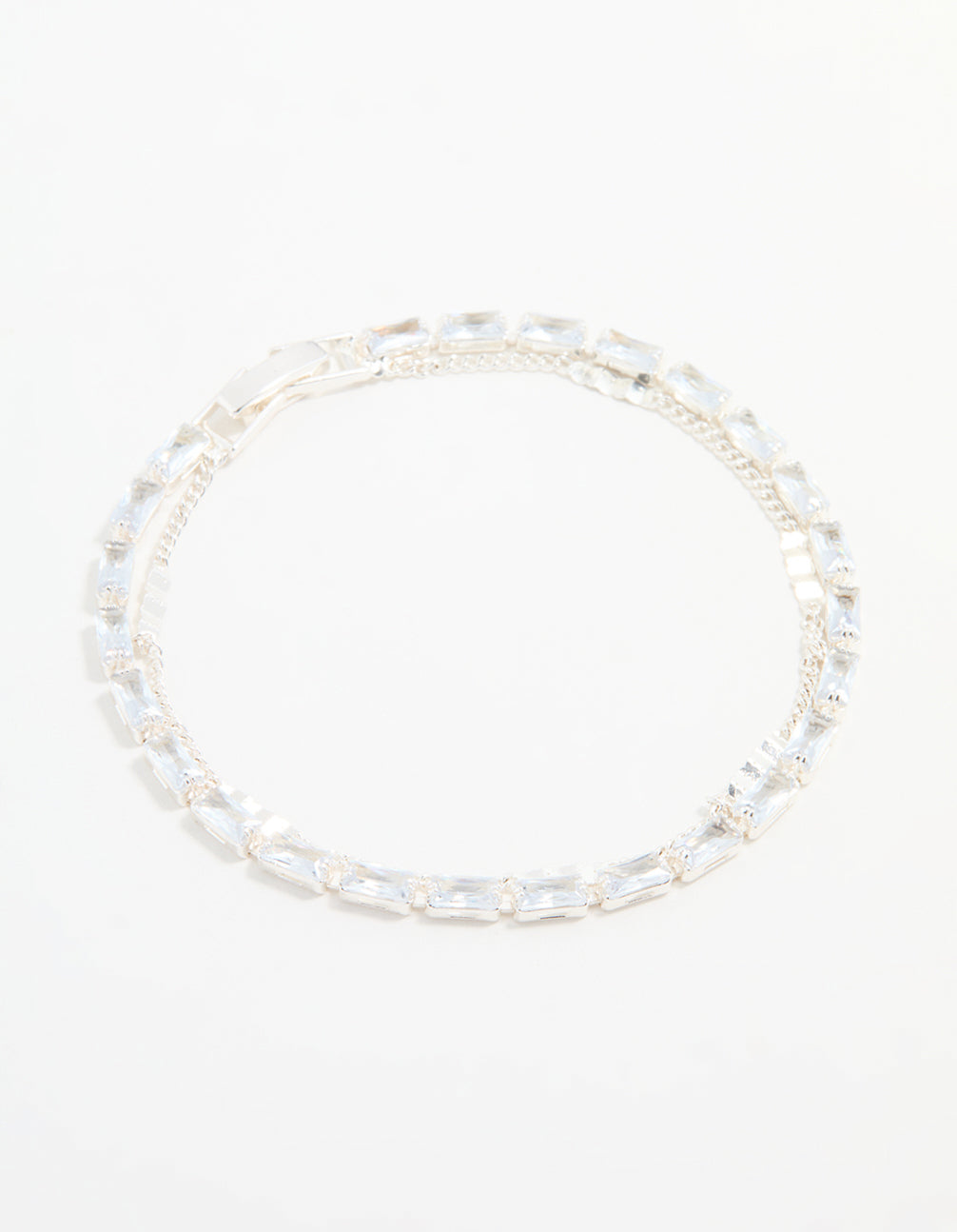 Silver Cubic Zirconia Diamante & Chain Bracelet