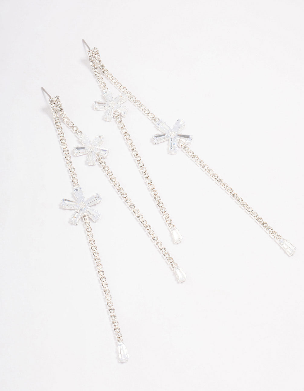 Add a premium touch to your ear stack with these stunning, silver-toned drop earrings. These elegant earrings feature a collection of floral-shaped, cubic zirconia crystals — perfect for completing any outfit.