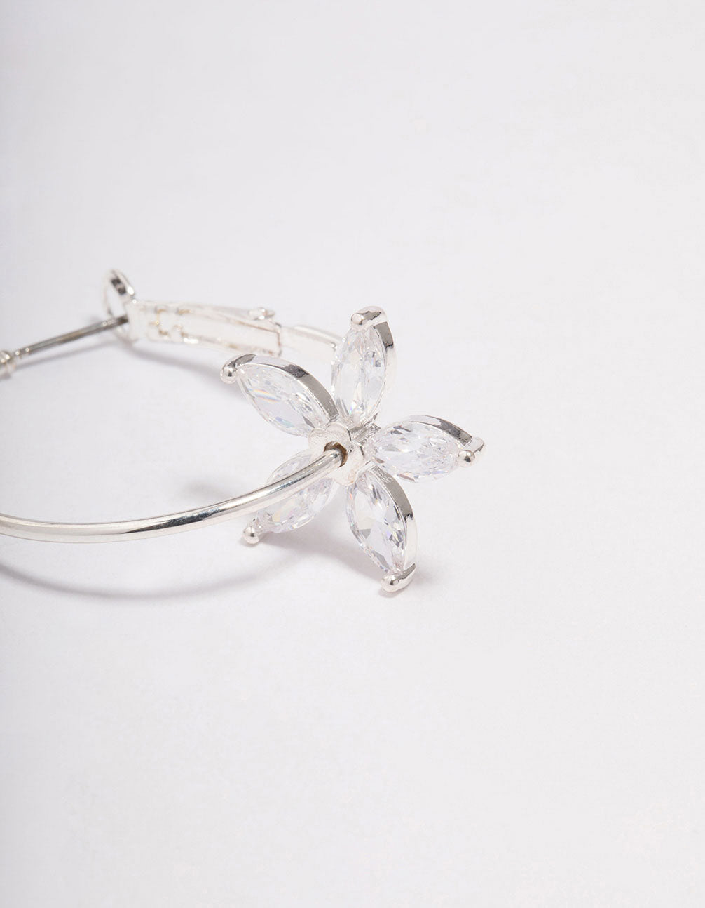 Add a premium touch to your ear stack with these stunning, silver-toned hoops. These simple hoop earrings feature a fine silhouette, adorned with floral-shaped cubic zirconia crystals — perfect for completing any outfit.