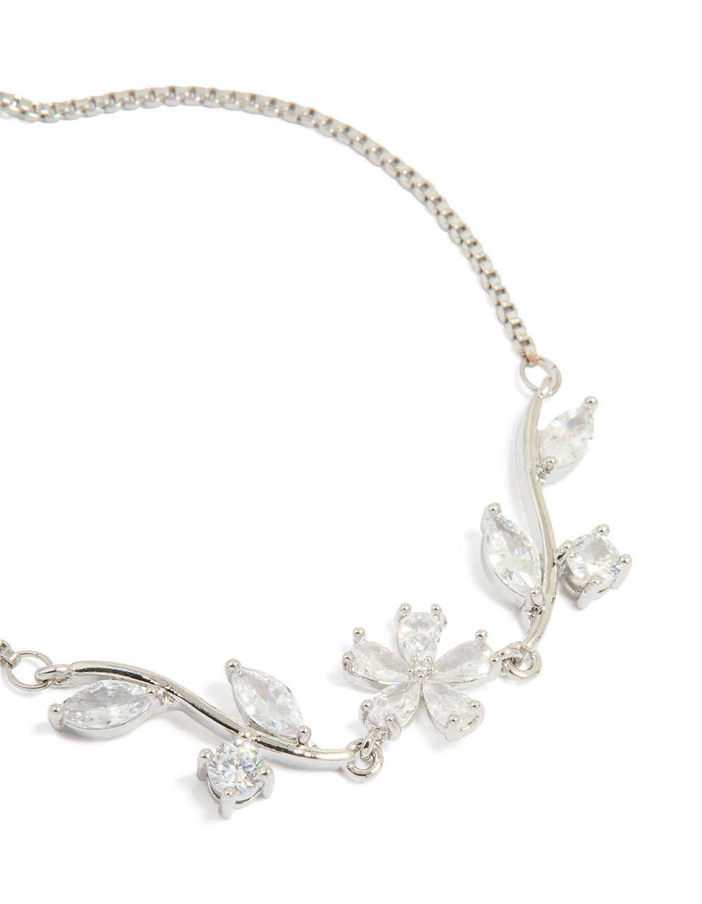 Silver Cubic Zirconia Flower & Leaf Toggle Bracelet