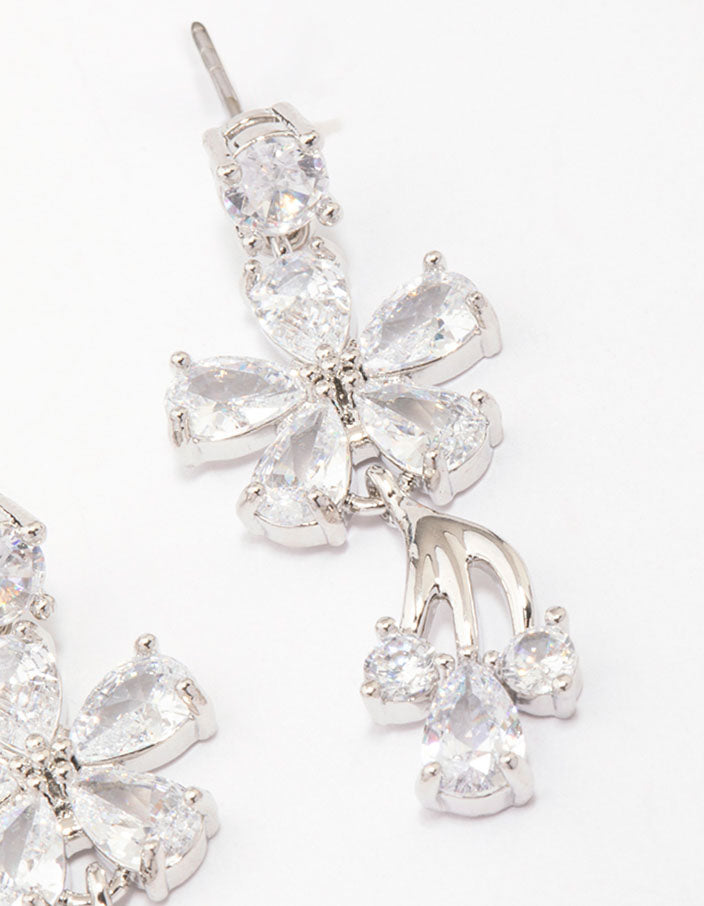 Elevate your outfit with our selection of stunning, cubic zirconia statement earrings. These lovely drop earrings feature an eye-catching floral design.