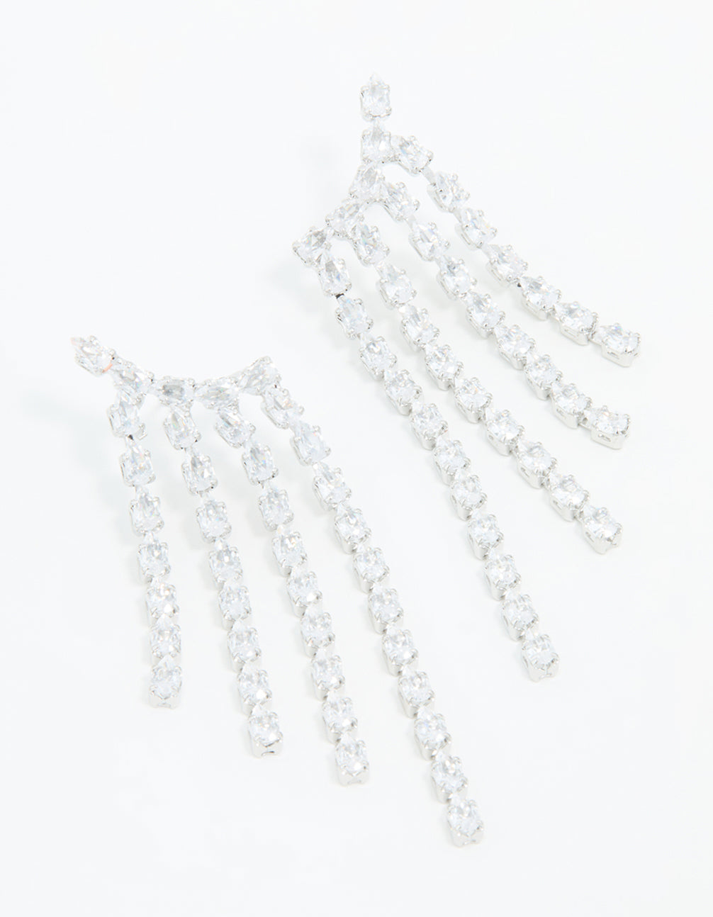 Shine bright with these stunning silver-toned cubic zirconia drop earrings! Their long pear drop design adds the perfect touch of sparkle.