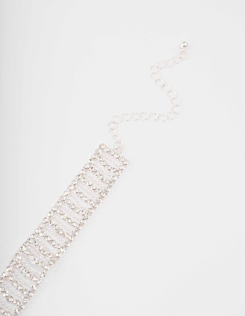 This simple choker necklace features a cubic zirconia studded chain, adorned with a solitaire shaped crystal in the centre for an eye-catching finish to your look.