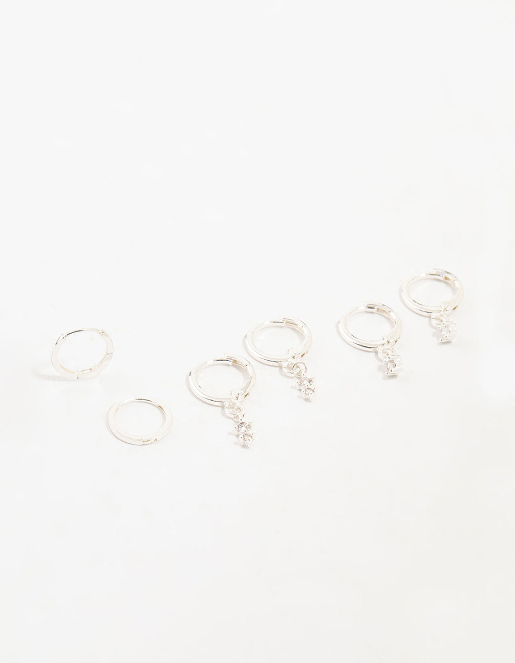 Be spoiled for choice with this fabulous hoop trio. This silver-toned set features sleek hoops, double cubic zirconia drop hoops, and a single cubic zirconia drop pair. Perfect for any occasion.
