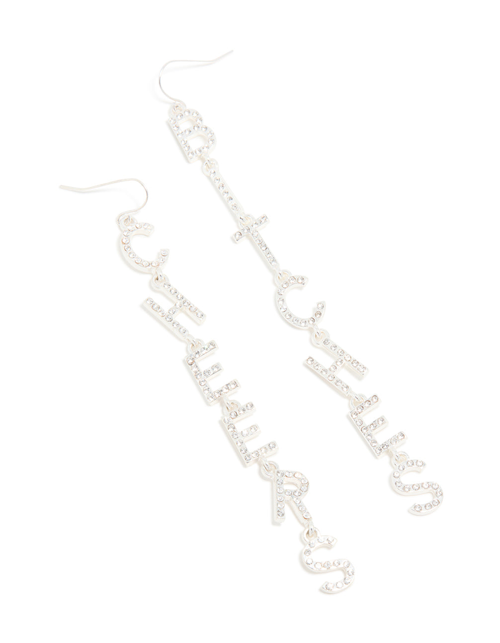 Raise a glass to style with these Silver Diamante Cheers B*tches Drop Earrings! Perfect for New Year’s Eve or any party plans, these drop earrings are crafted in a sleek silver-tone finish and adorned with shimmering diamantes that catch the light beautifully. Their playful 'cheers b*tches' design adds a cheeky twist to your jewellery game, making them ideal for fun nights out or celebratory events. Pair them with your favourite party dress or glam up a chic jumpsuit for a look that’s full of personality. Whether you’re hitting the dance floor or toasting with friends, these earrings are the ultimate statement piece to add shimmer and sass to your outfit.